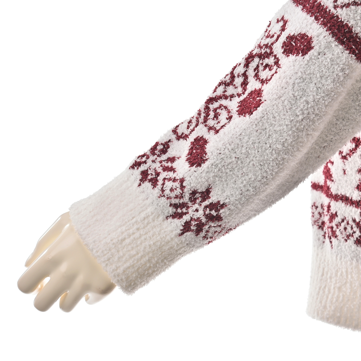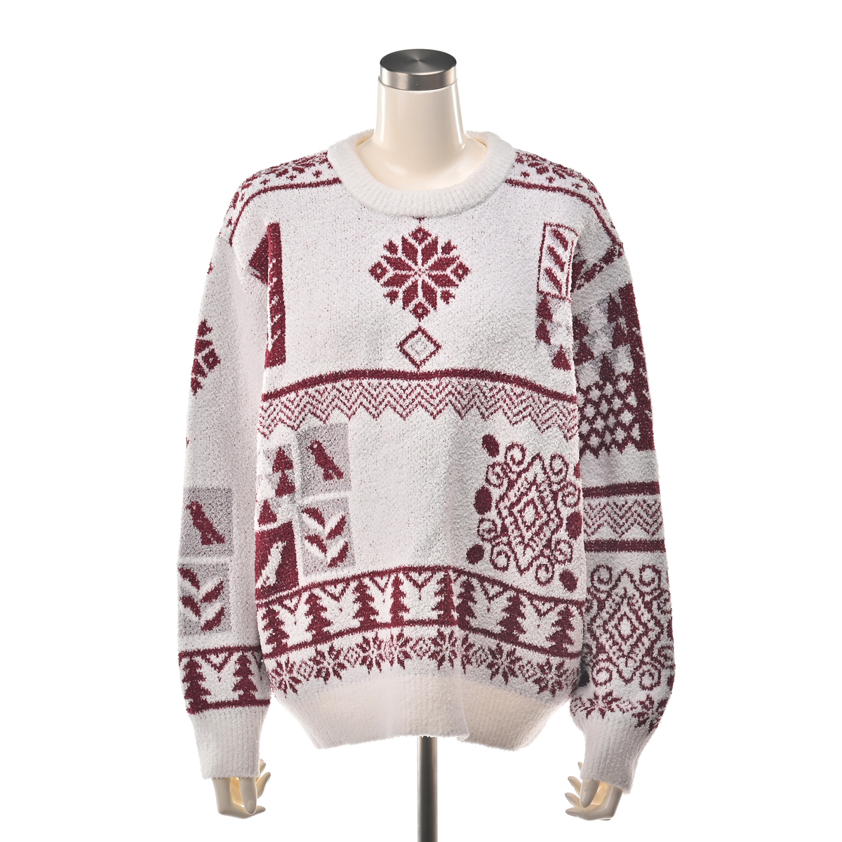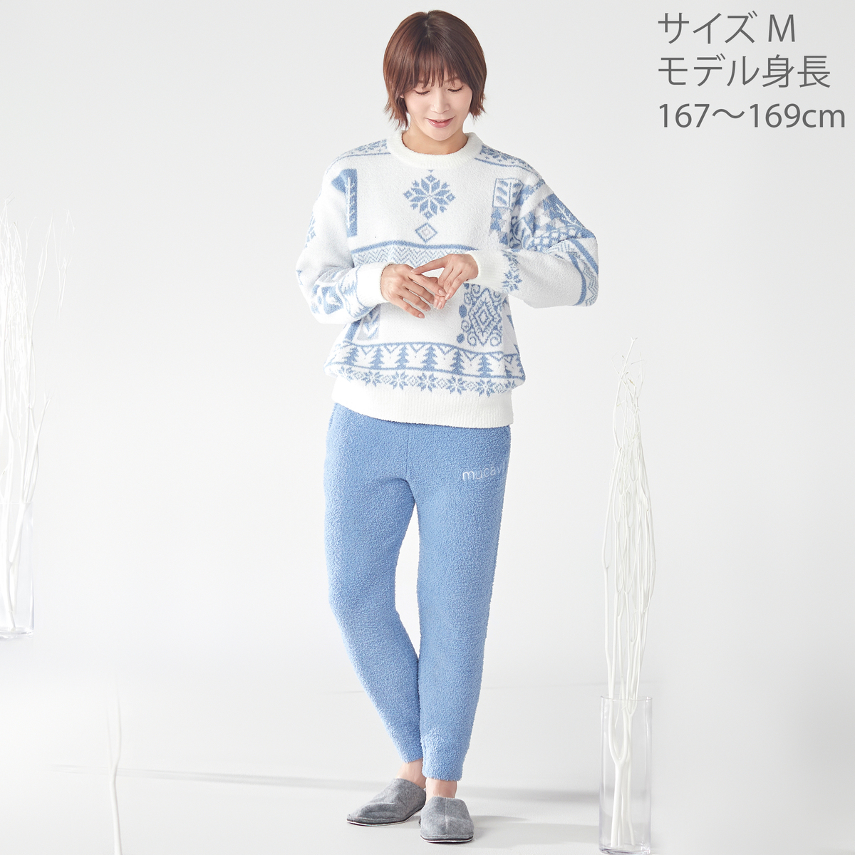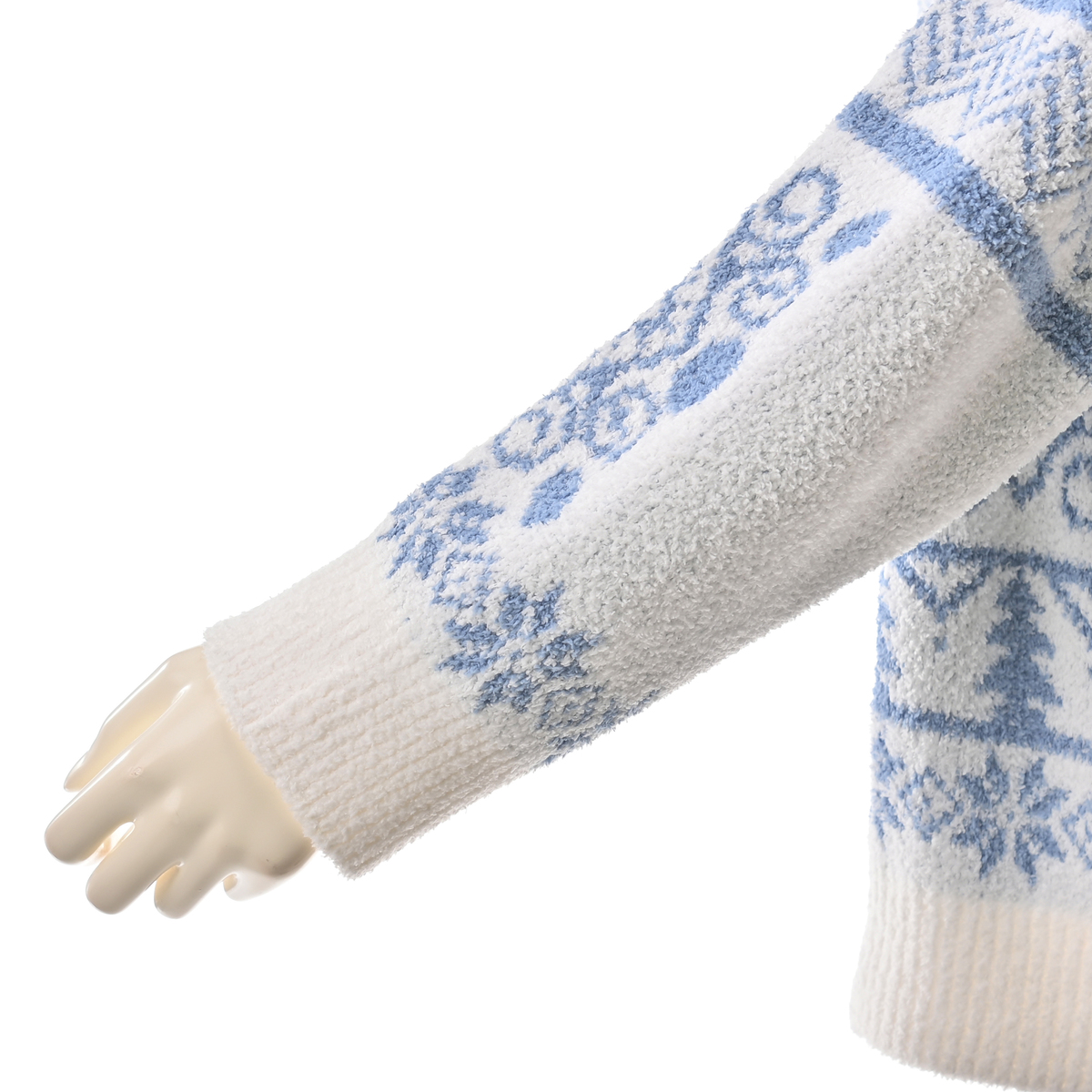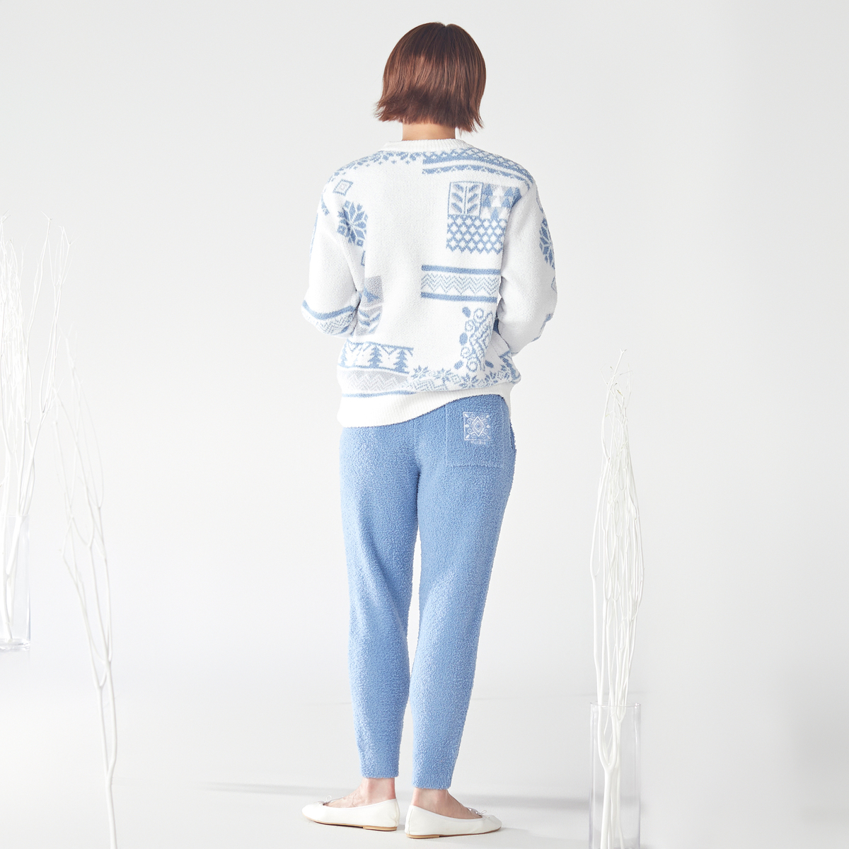 フィンランドの雪の結晶や森をモチーフにした伝統的なノルディック柄を全面にデザインしたプルオーバー。北欧らしい温かみと華やかさを纏い、部屋着でありながら大人の洗練さを感じられます。日常に彩りを添え、冬の季節感を楽しめます