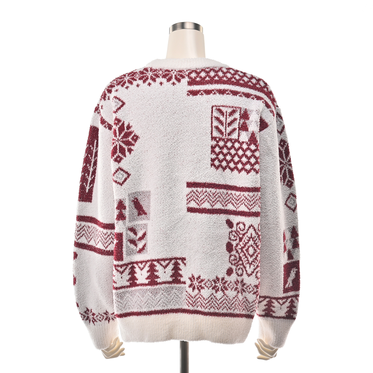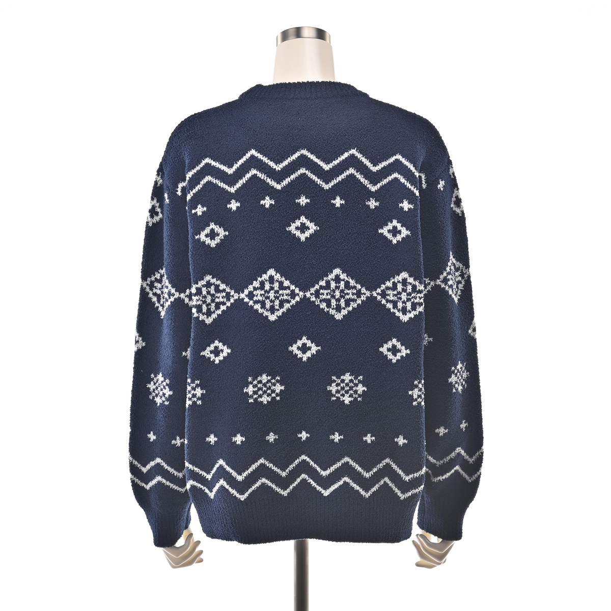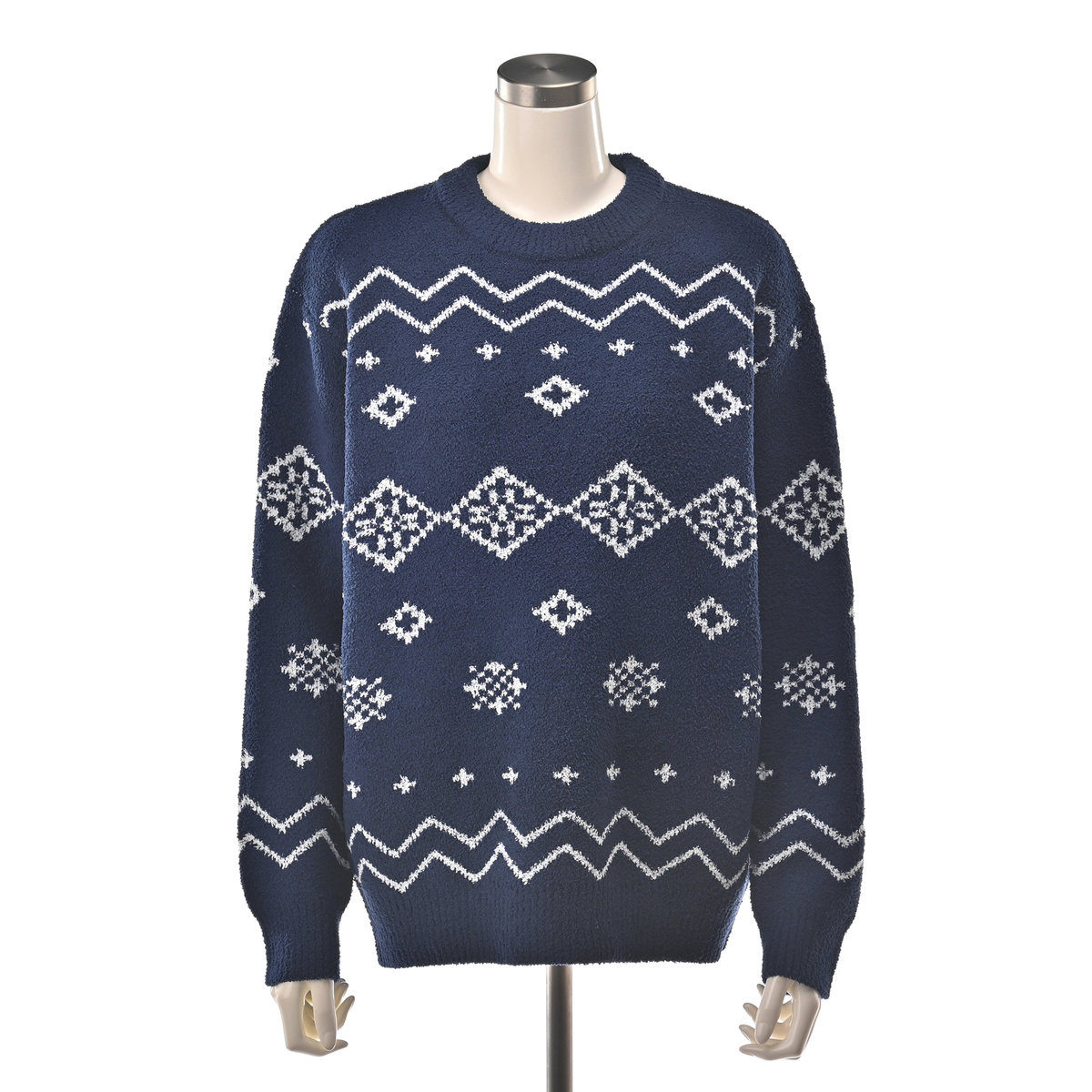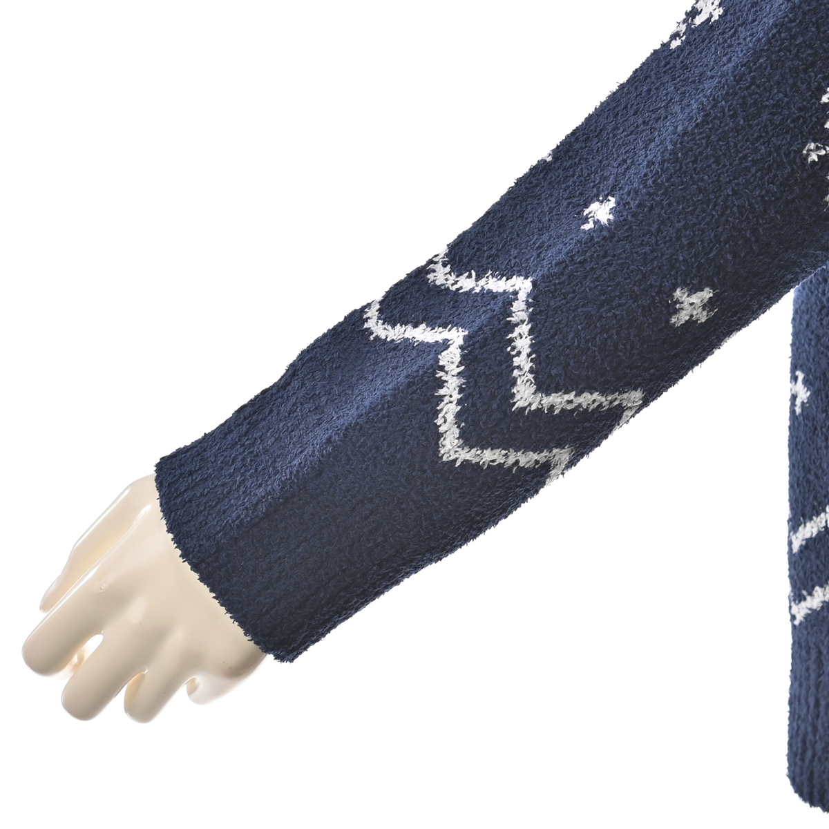 フィンランドの雪の結晶や森をモチーフにした伝統的なノルディック柄を全面にデザインしたプルオーバー。北欧らしい温かみと華やかさを纏い、部屋着でありながら大人の洗練さを感じられます。日常に彩りを添え、冬の季節感を楽しめます