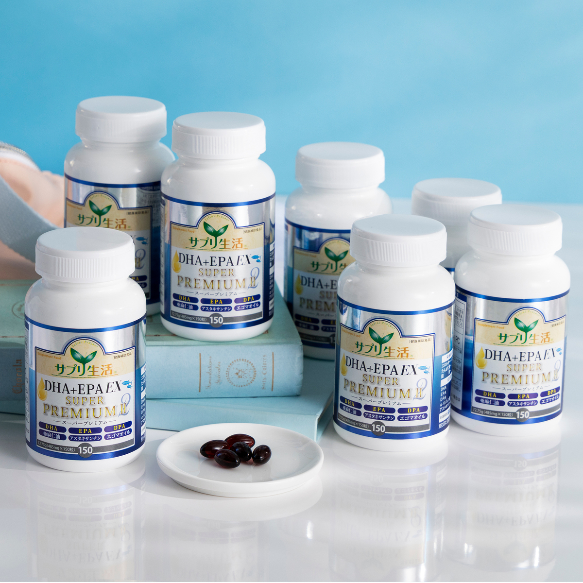 [アレルギー物質特定原材料8品目] なし [内容量] 150粒×6個 計900粒 [目安量] 1日5粒 [お召し上がり方] 健康補助の食品として1日に5粒を目安に水またはお湯と共にお召し上がり下さい 栄養成分表示[5粒(2425mgあたり)] エネルギー 17.58kcal たんぱく質 0.62g 脂質 1.62g 炭水化物 0.12g 食塩相当量0.0033g DHA 440mg EPA 130mg DPA 10mg α-リノレン酸 230mg アスタキサンチン 1mg [保存方法] 高温多湿と直射日光を避けて保存してください [注意事項] ※体質に合わない場合は摂取を中止し、医師にご相談下さい ※乳幼児の手の届かないところに保管してください ※食生活は、主食、主菜、副菜を基本に、食事のバランスを [原料原産地] DHA含有精製魚油(国内製造) [原産国] 日本 [セット内容] ・サプリ生活DHA+EPAEX スーパープレミアムII 6個 ・サプリ生活DHA+EPAEX スーパープレミアムII [原材料] DHA含有精製魚油(国内製造)、EPA含有精製魚油、亜麻仁油、DPA含有精製魚油、えごま油、ヘマトコッカス藻抽出物/ ゼラチン、グリセリン、酸化防止剤(ビタミンE) [原材料] DHA含有精製魚油(国内製造)、EPA含有精製魚油、亜麻仁油、DPA含有精製魚油、えごま油、ヘマトコッカス藻抽出物/ ゼラチン、グリセリン、酸化防止剤(ビタミンE)