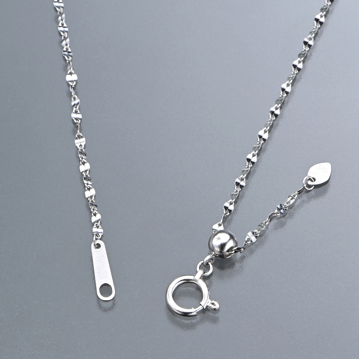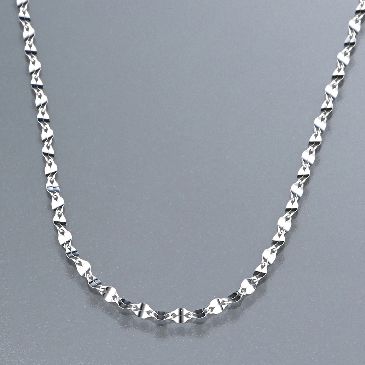 アズキチェーンをベースに、湾曲させたプレッシングをかけて場面を広く取ったペタルチェーン。長さは約45.0cmまたは約60.0cmをご用意。スライド式アジャスター付きで調整もできます