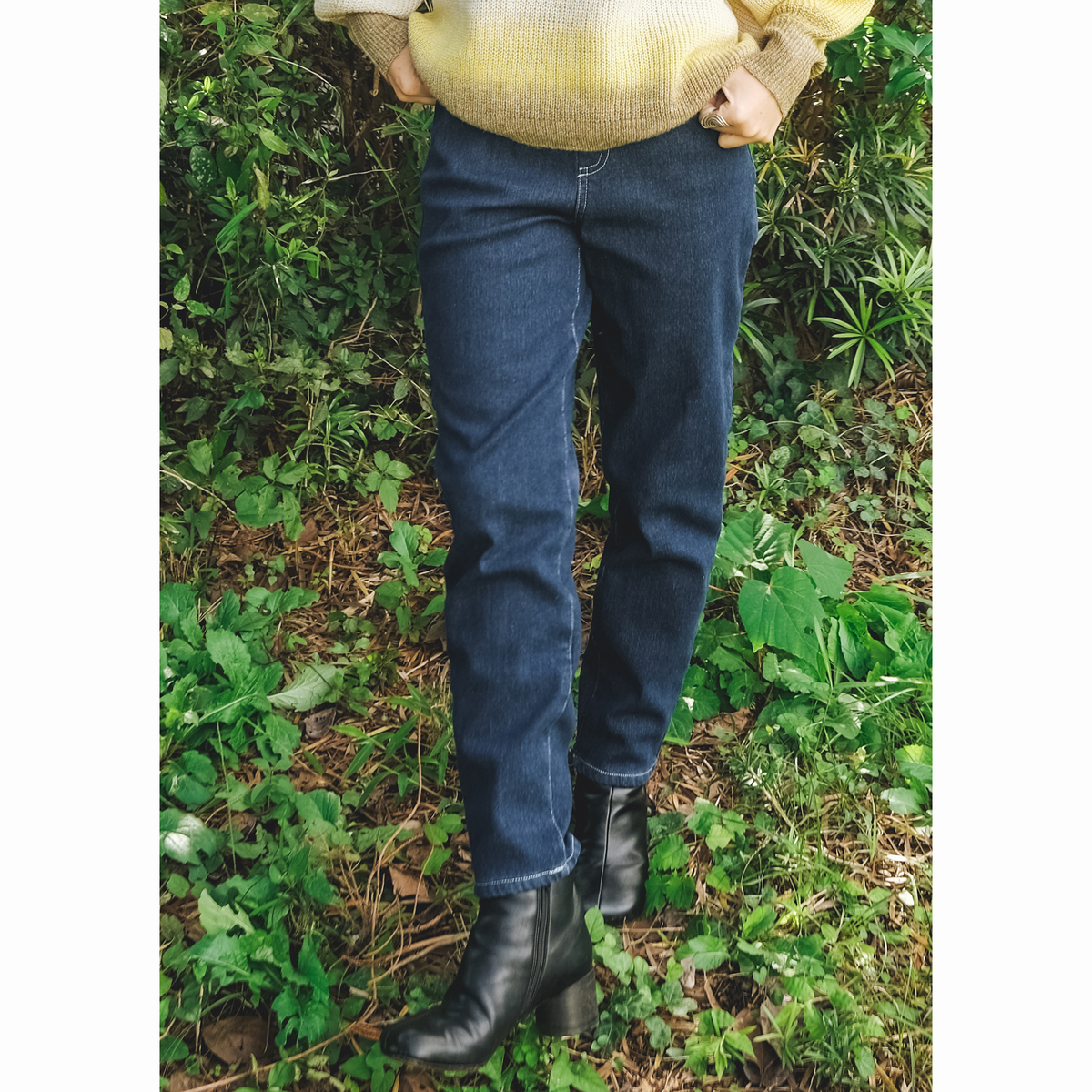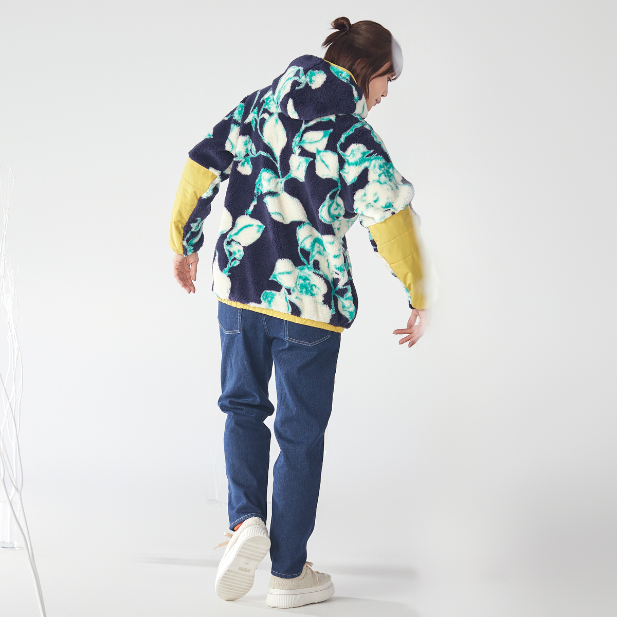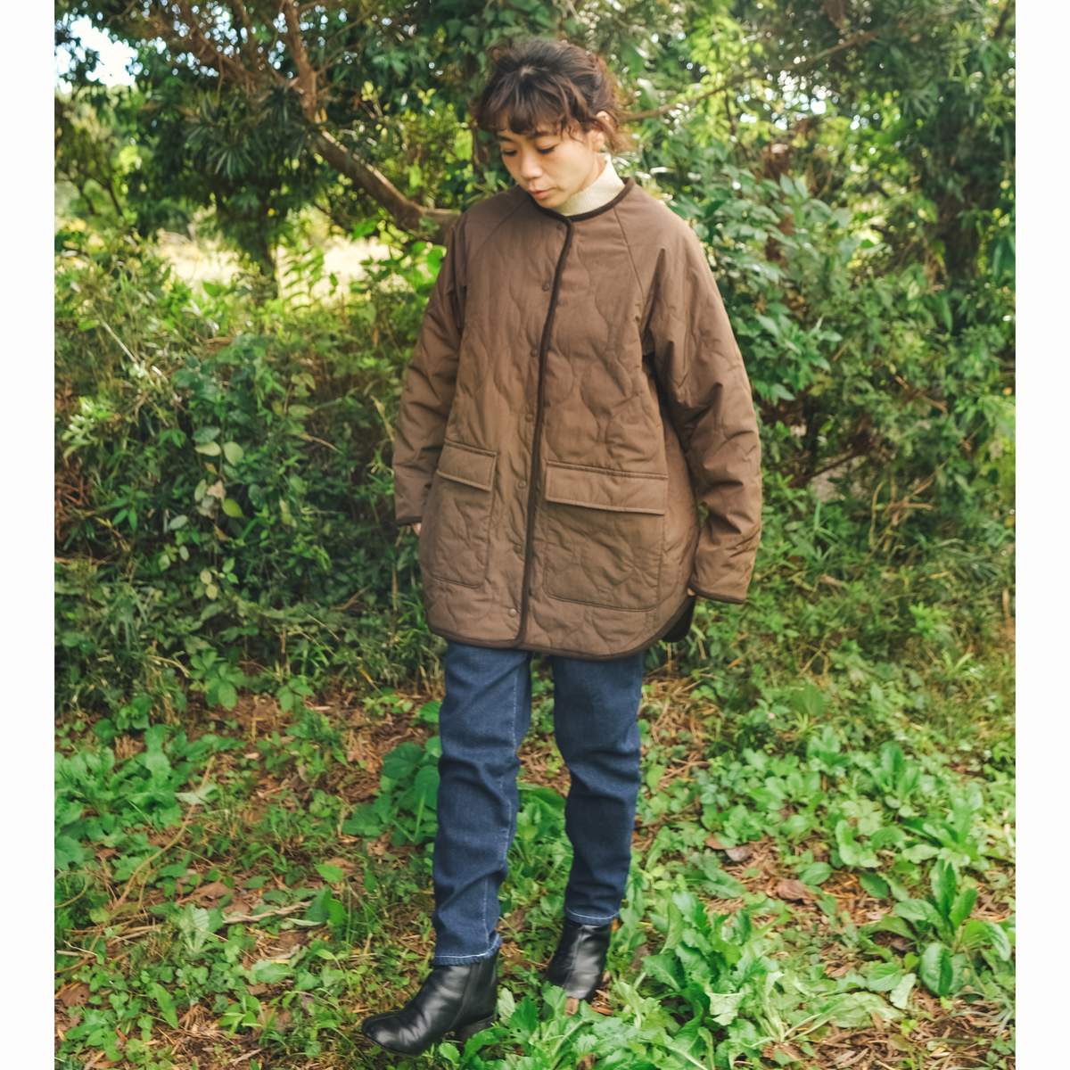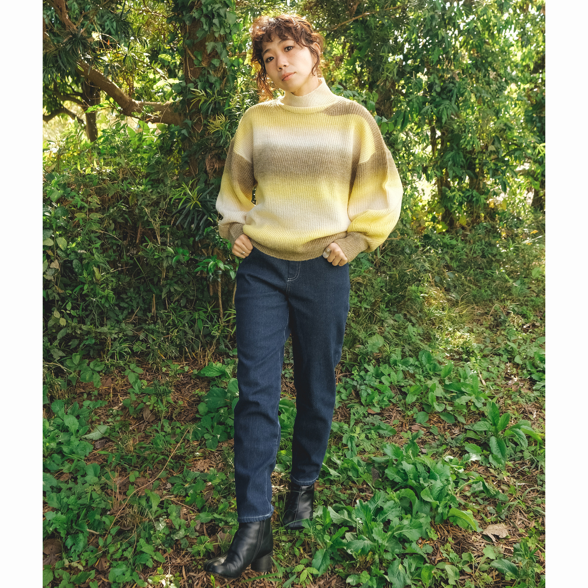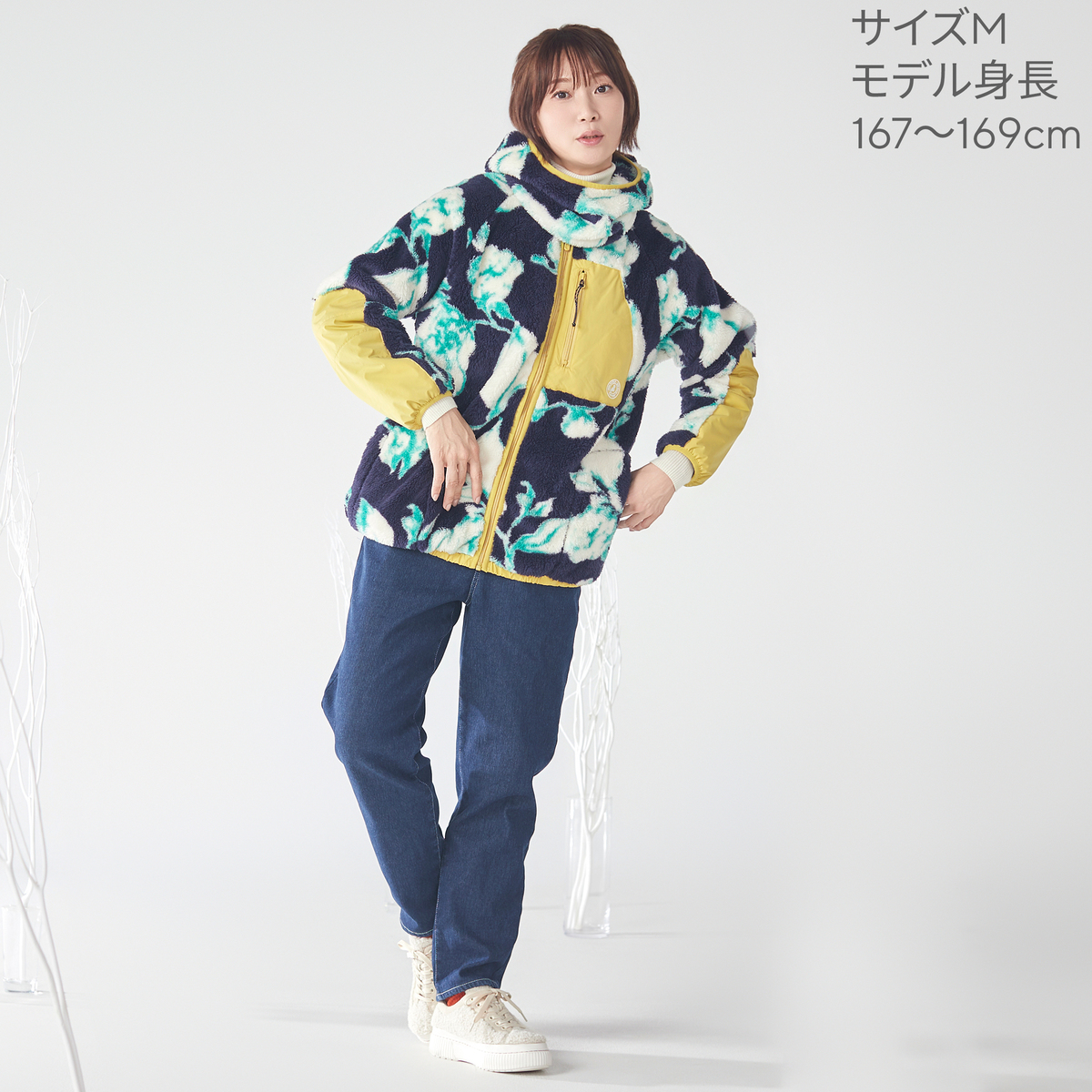 裏面にボアをボンディングした、あたたかなテーパードパンツ。ストレッチ性のあるデニム素材を使用しています。ウエストはスパンテレコを使用し、ストレスを感じにくいハラマキ仕様にしました