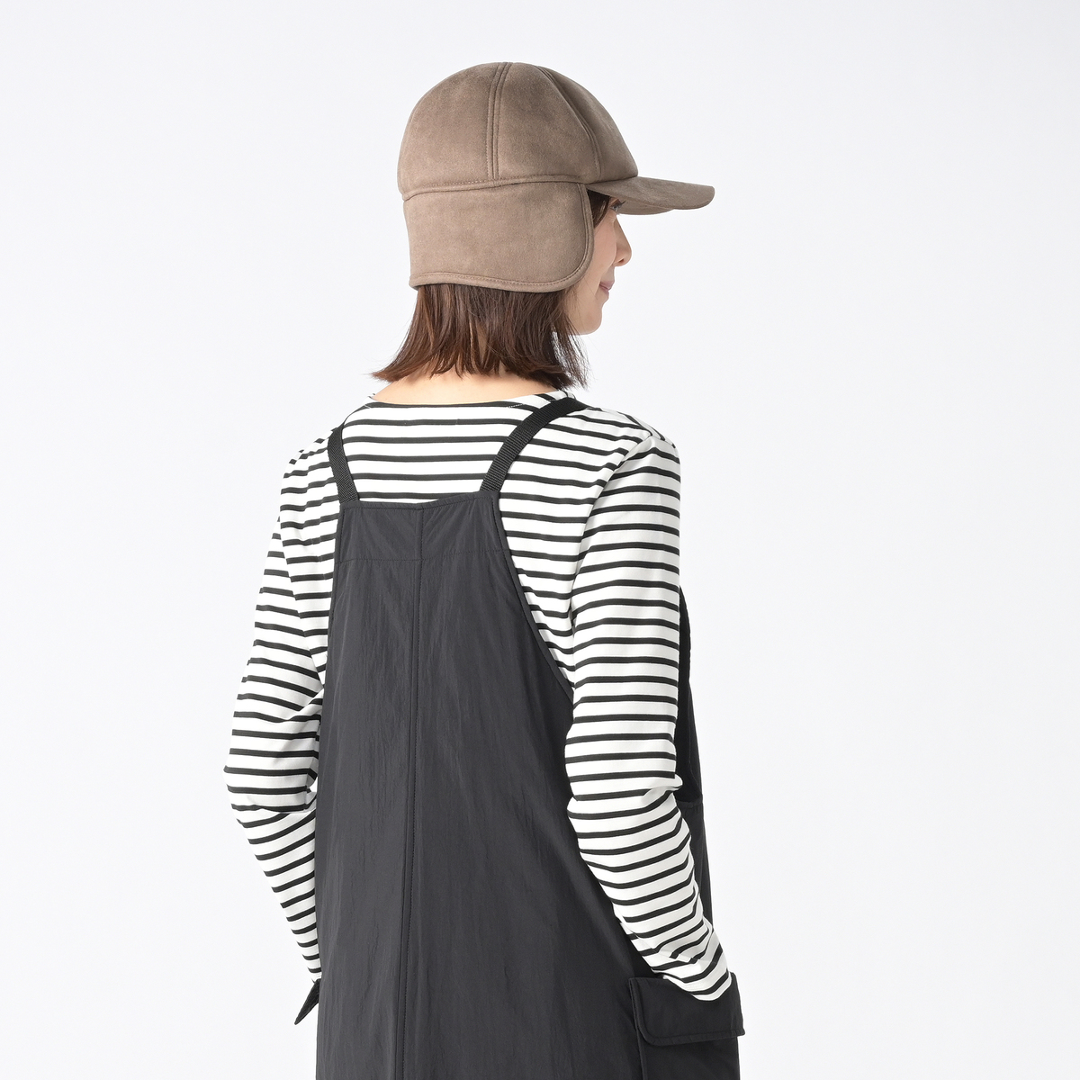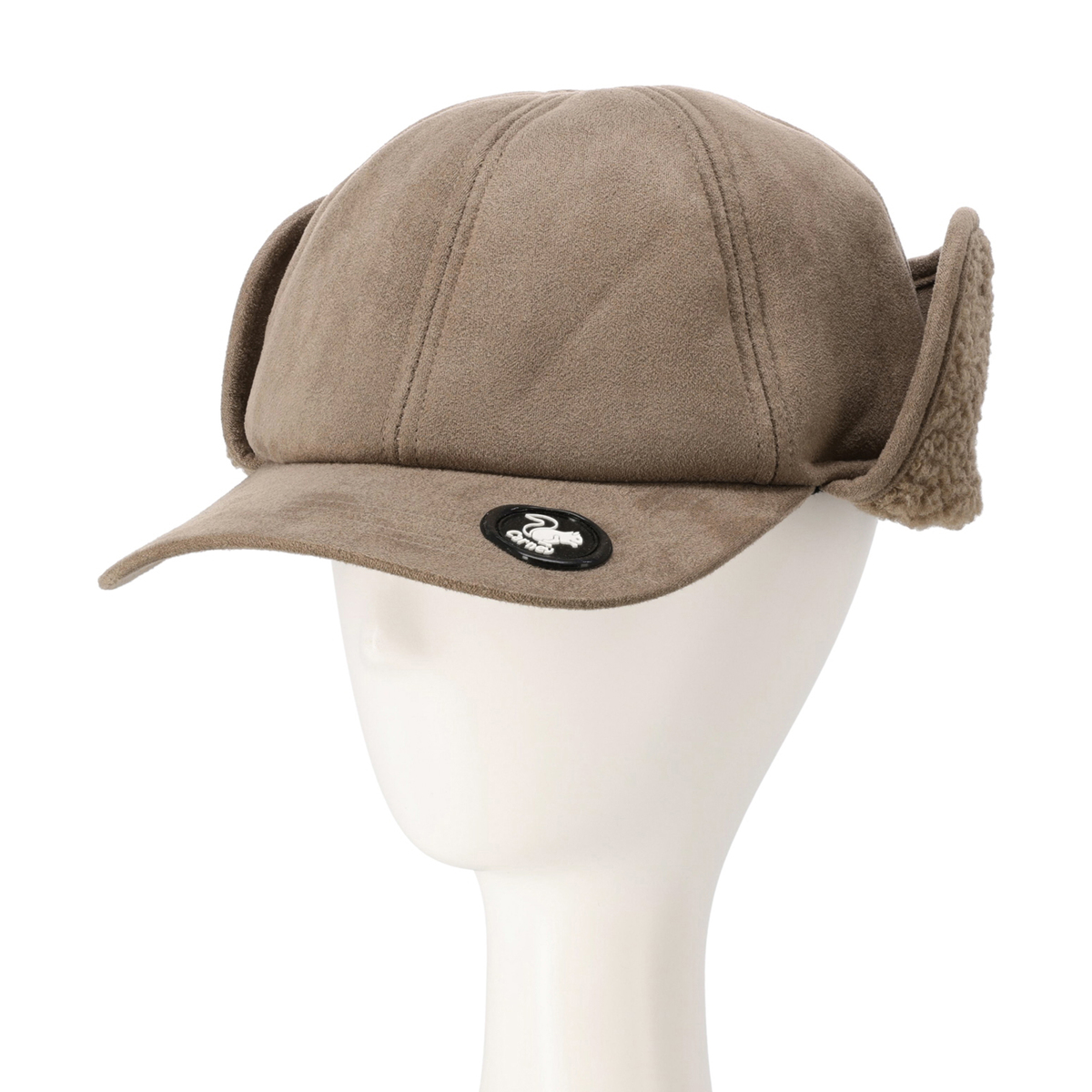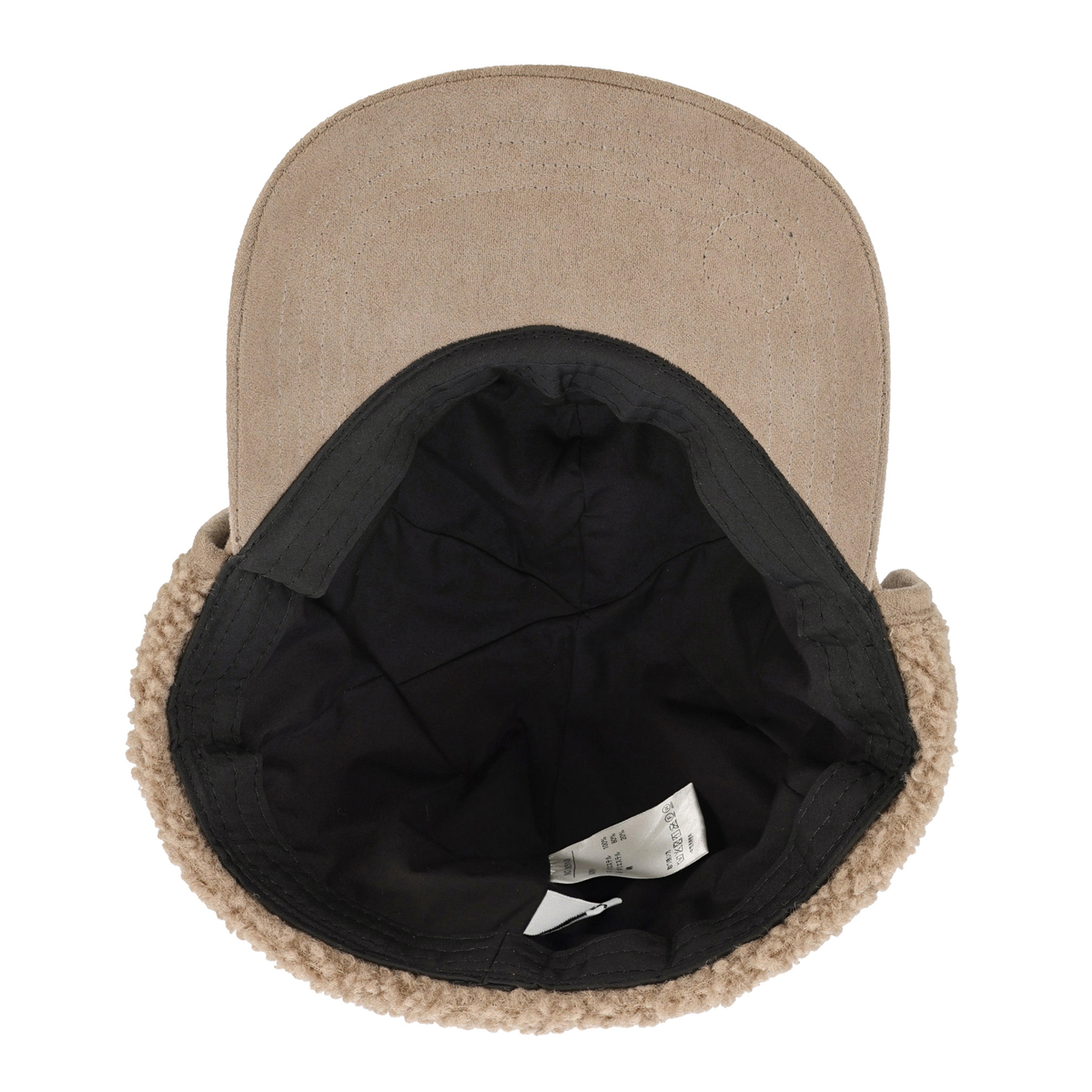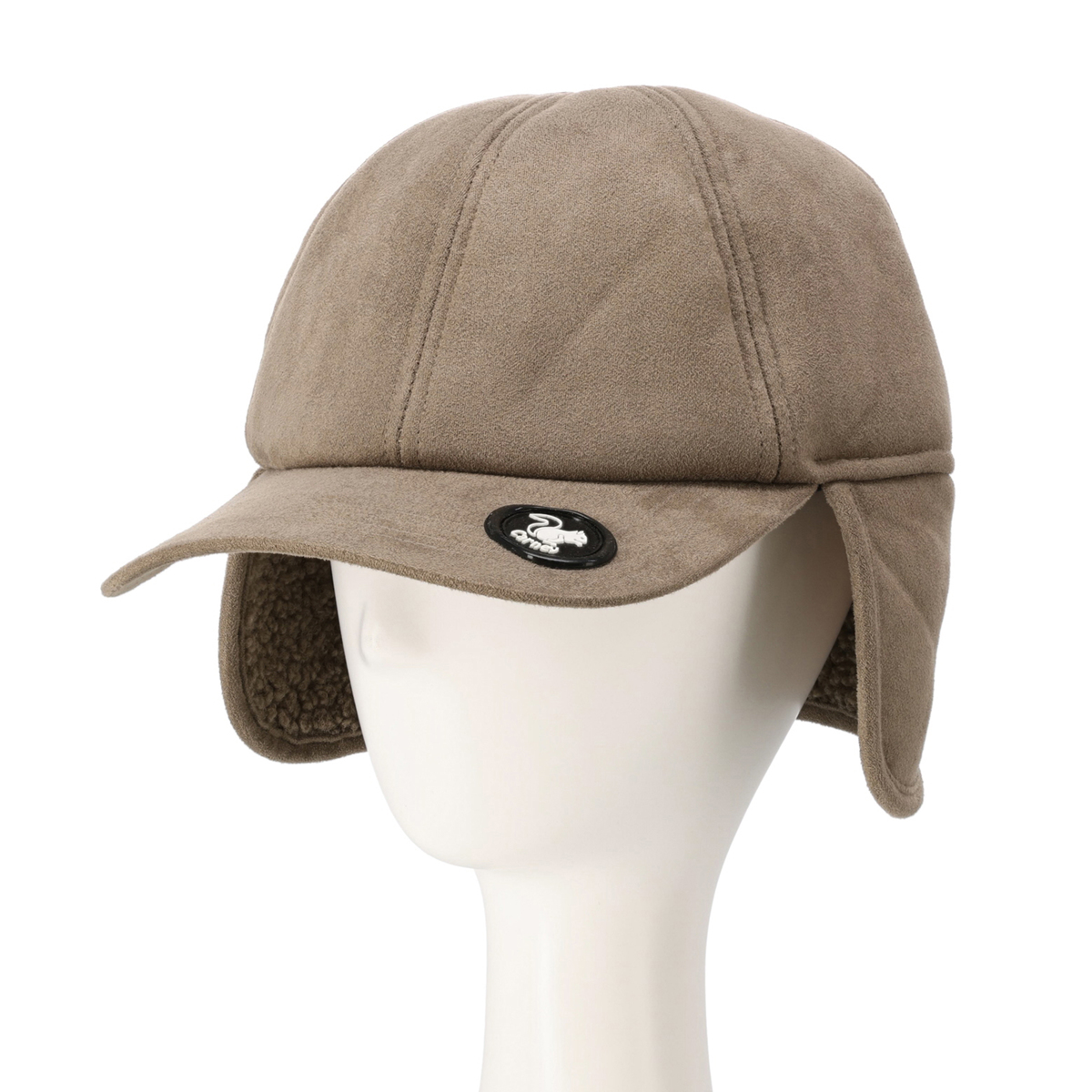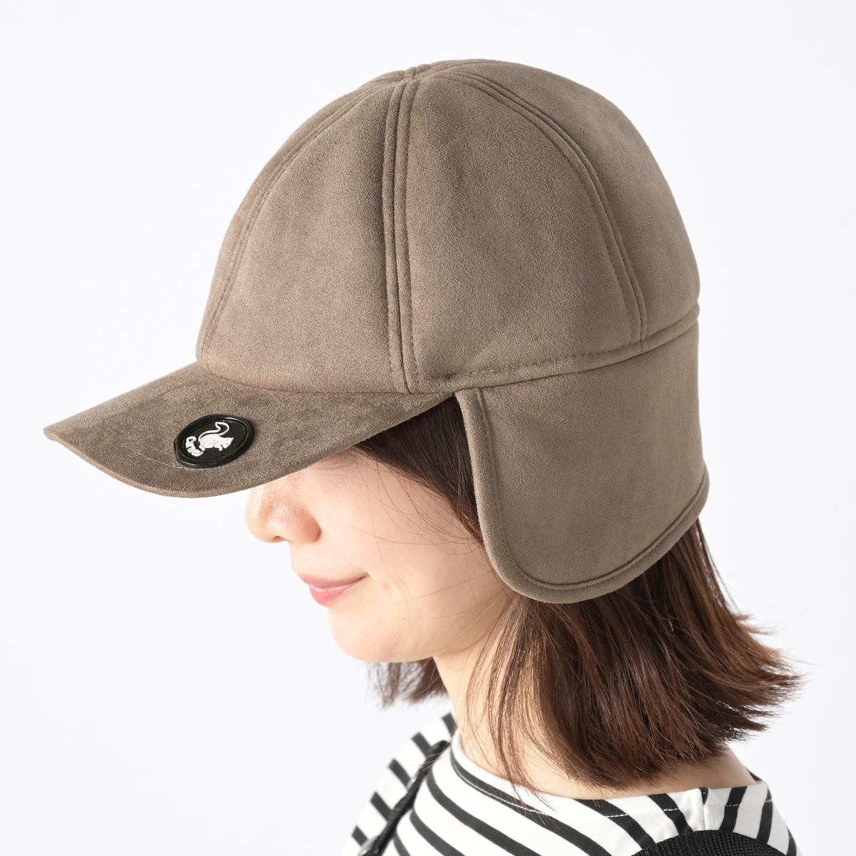 フェイクスエードに、耳当て部分はボアをボンディングしたフェイクムートンを使用したアビエイターキャップ。防寒性とデザイン性を兼ね備え、ブリム左先にはCarney定番のシリコンワッペンを配置。手洗い可能でデイリー使いに便利です