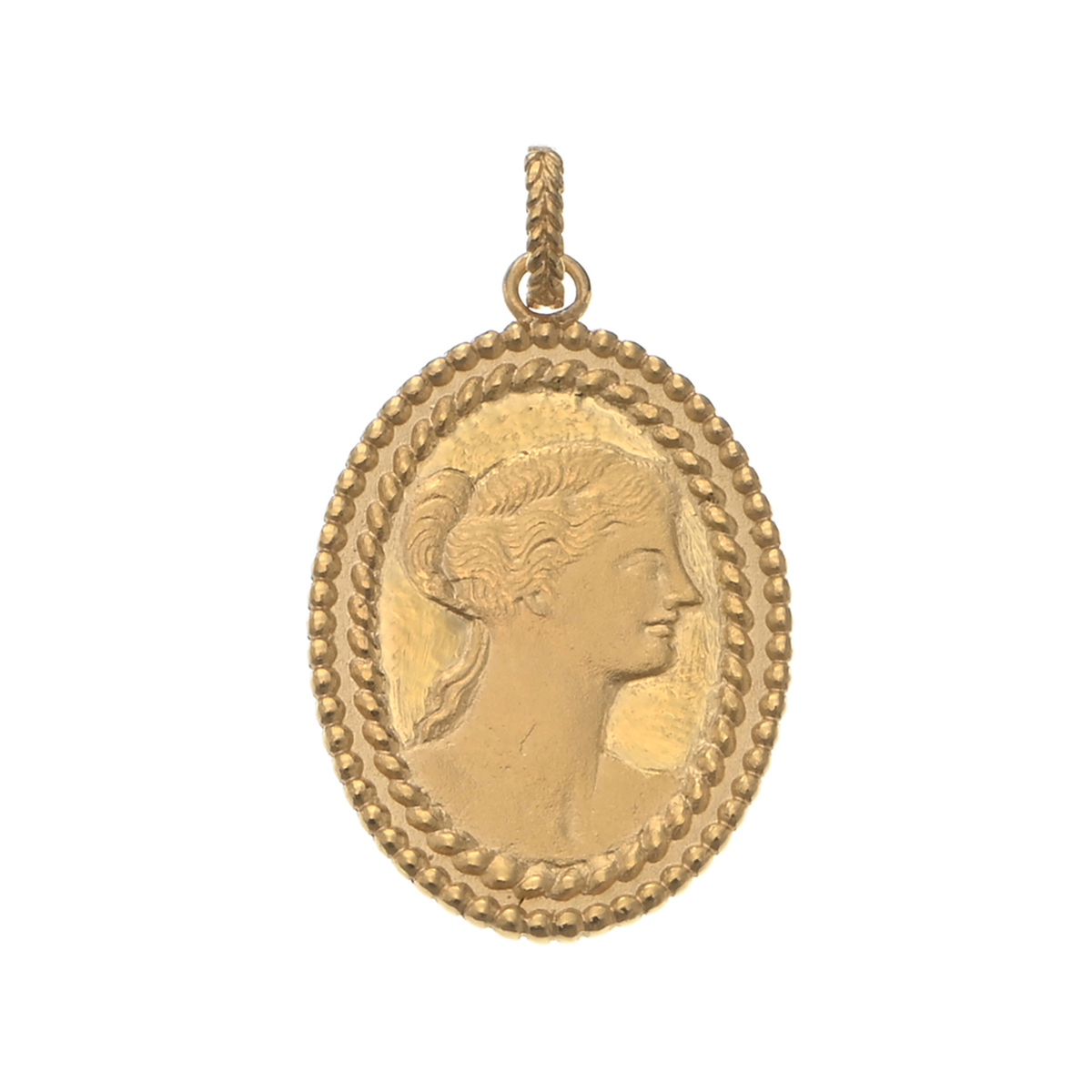純金を使用したアンティークの風合い漂うペンダントヘッド。胸元を上品な印象で彩り、装いを格上げしてくれます