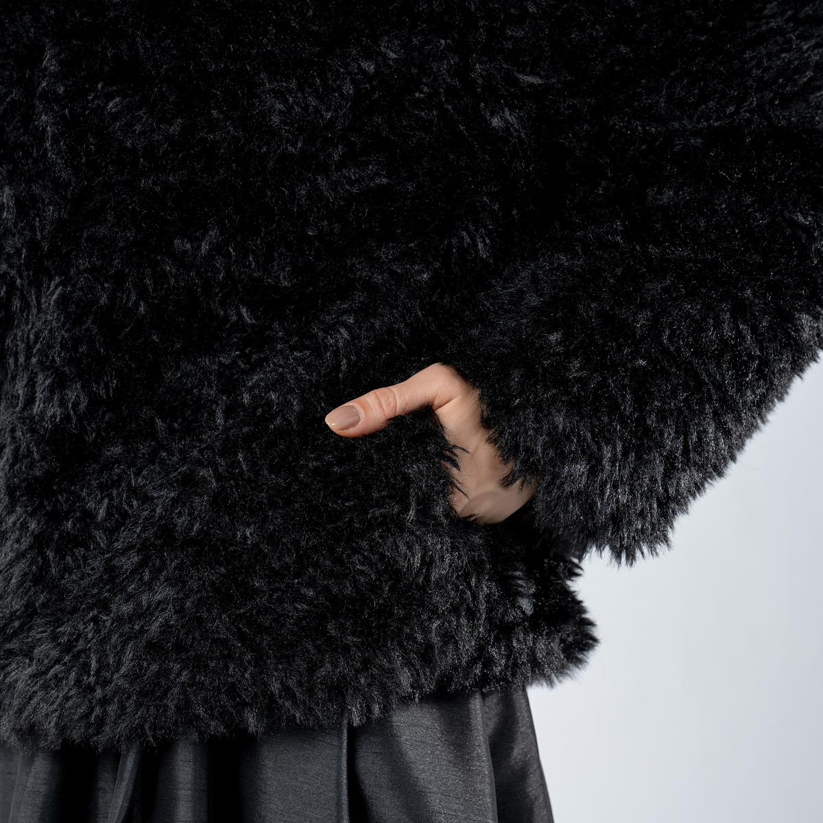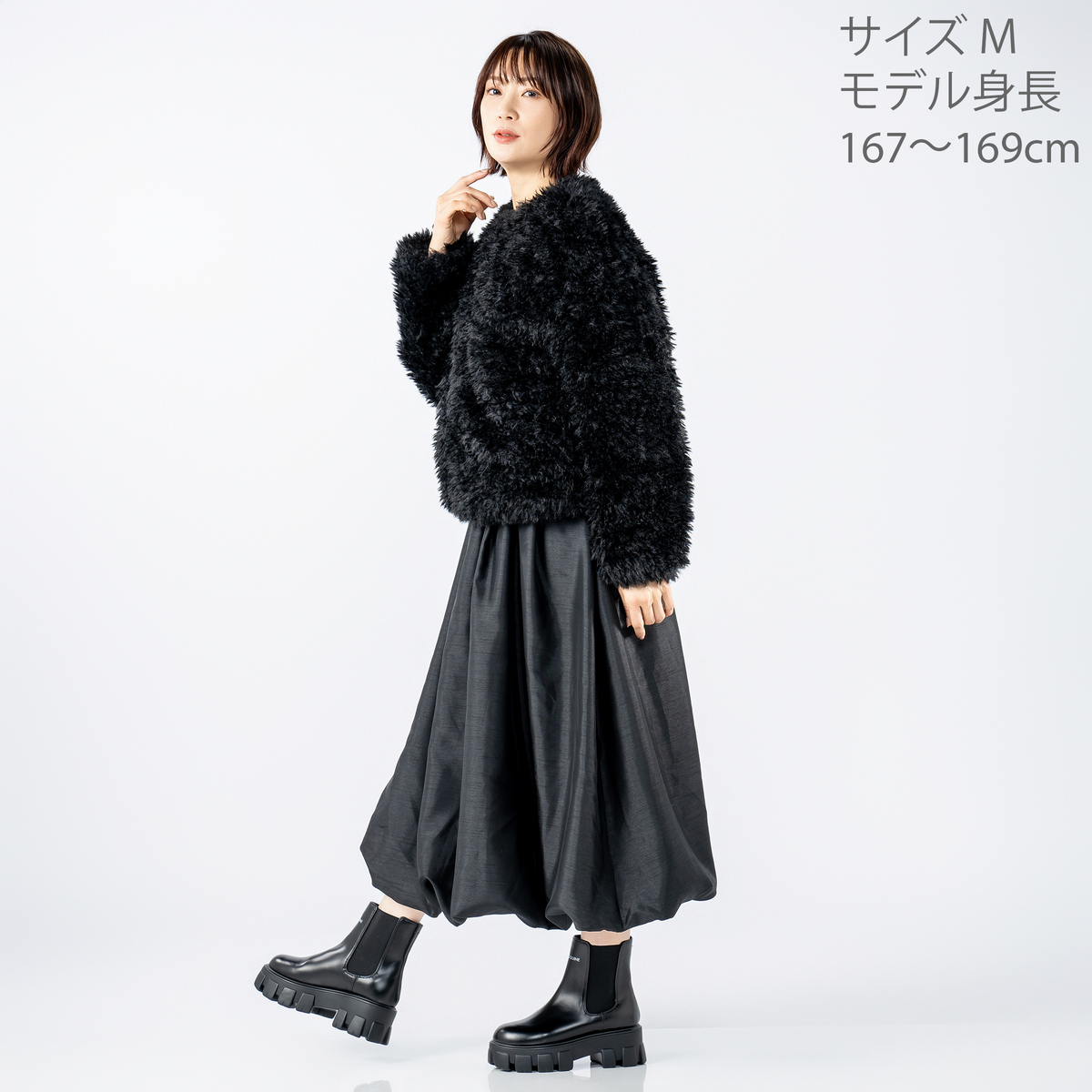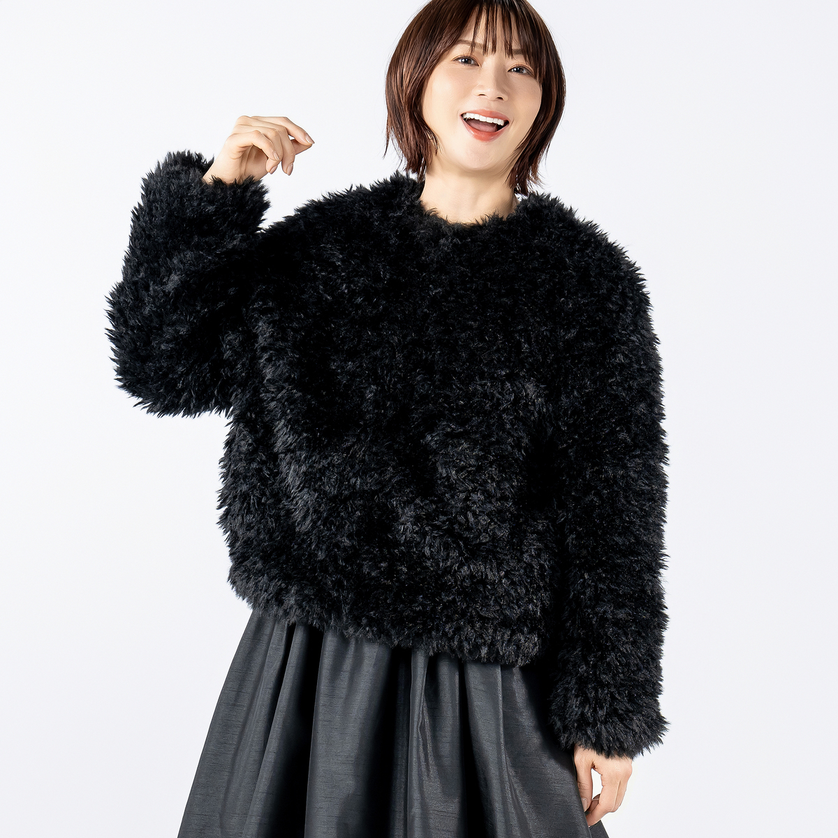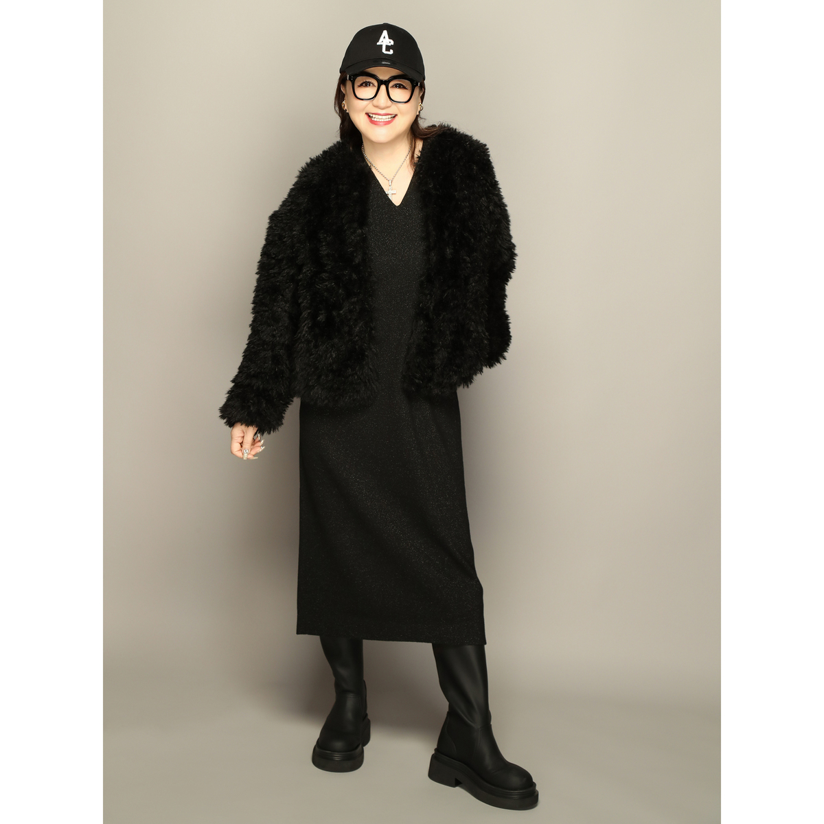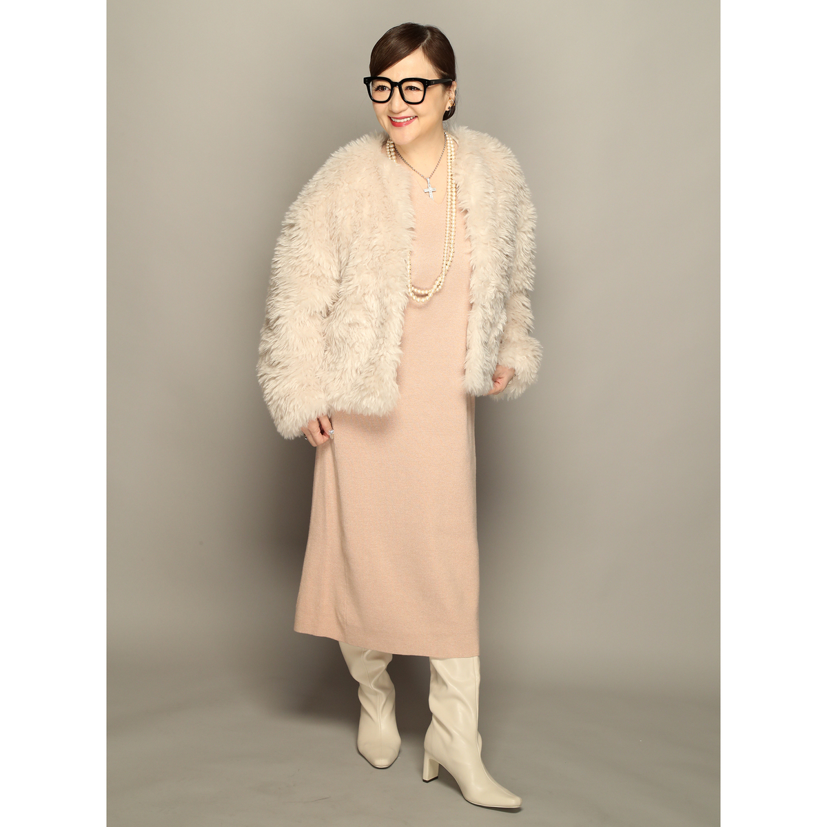 当然ピンクラメのニットワンピとセットで購入しました。エコファージャケットも持ってるんですが毛足がふわふわカールしたこちらもゴージャスでお正月に着ようと思います。