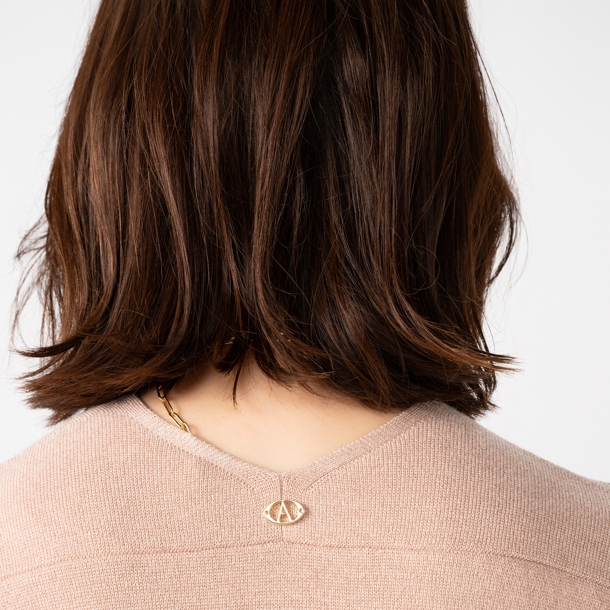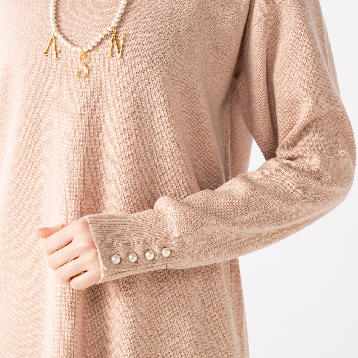 普段あまりアンコキーヌにはないピンクに一目惚れ 60歳近くなりますがベビーピンクの優しい色合いやりすぎないラメでとても良かったです ただどうも私にはV開きは着こなしが難しく丸首だったらもっと良かったのになぁと‥ が概ね気に入りました あと少し薄いニット生地なので長く着られるのかな?とも思いました