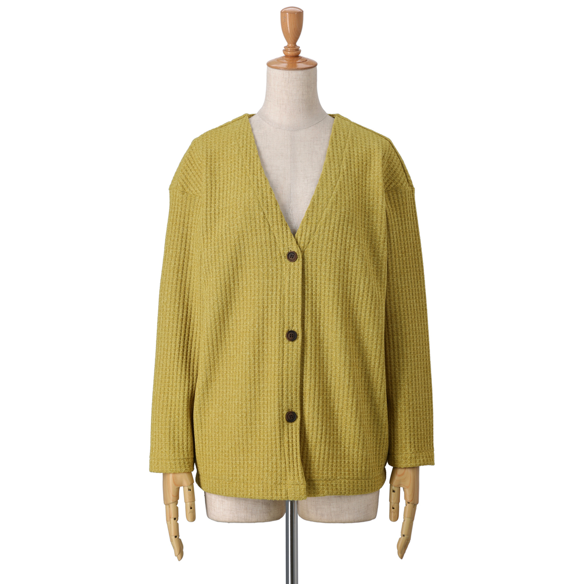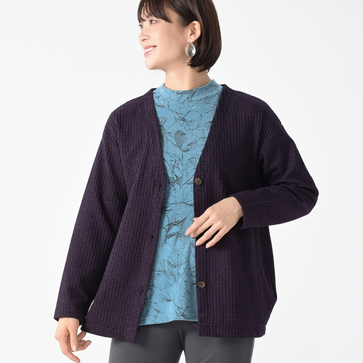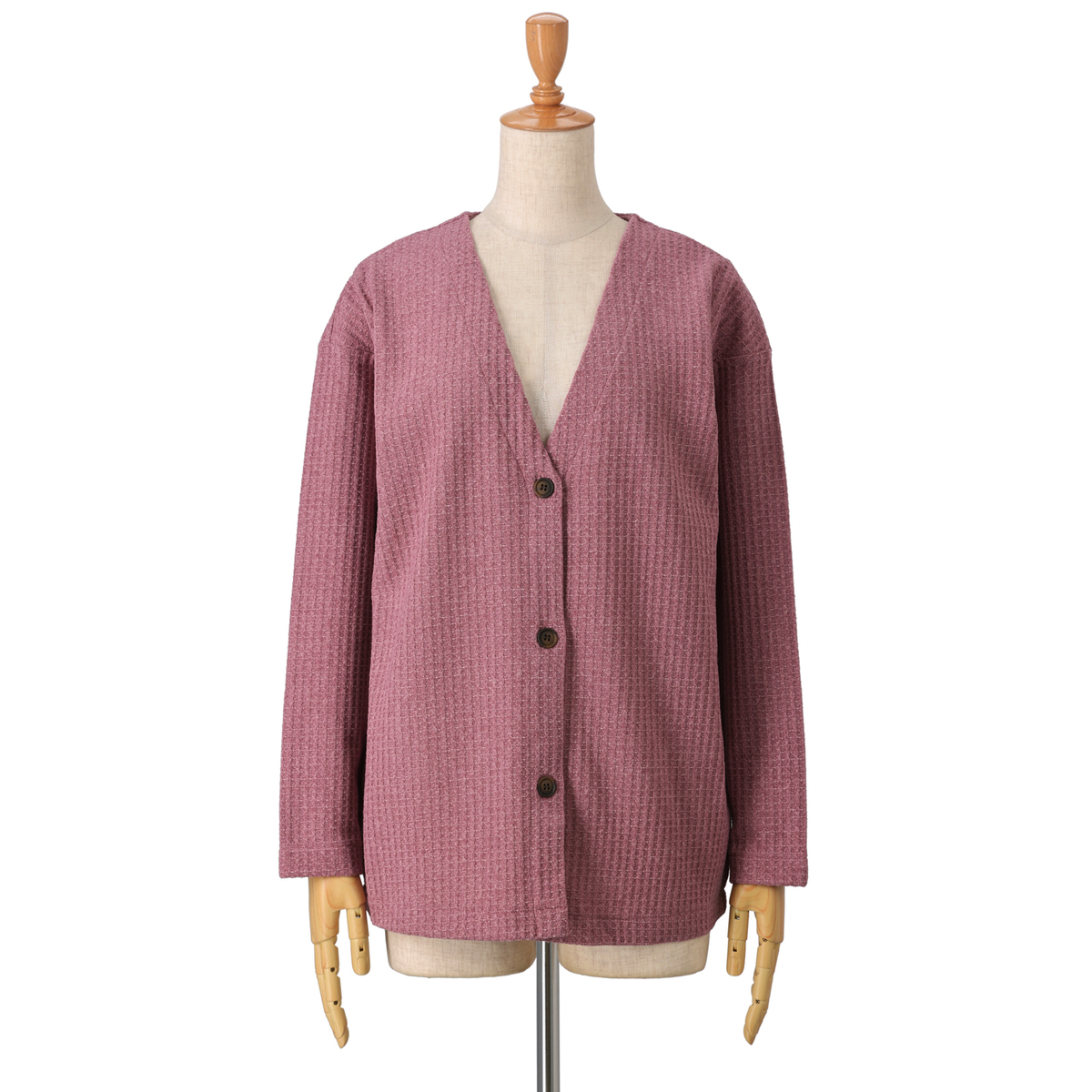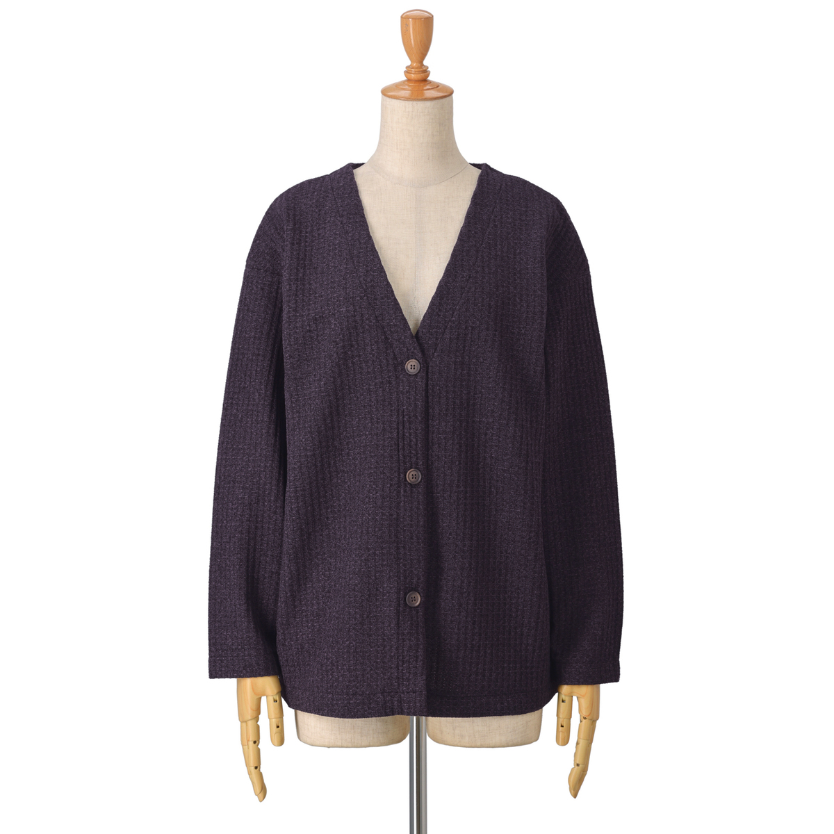 東レの機能素材、エアロウォーム(中空糸)を使ったカーディガンです。軽さと保温性が特徴の素材で、寒い季節も快適に着用いただけます