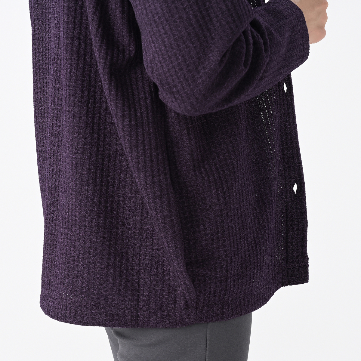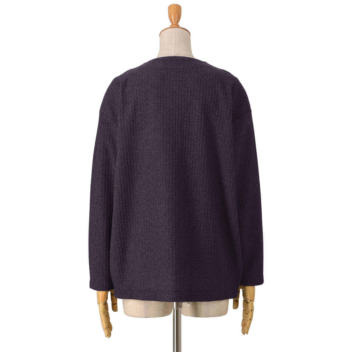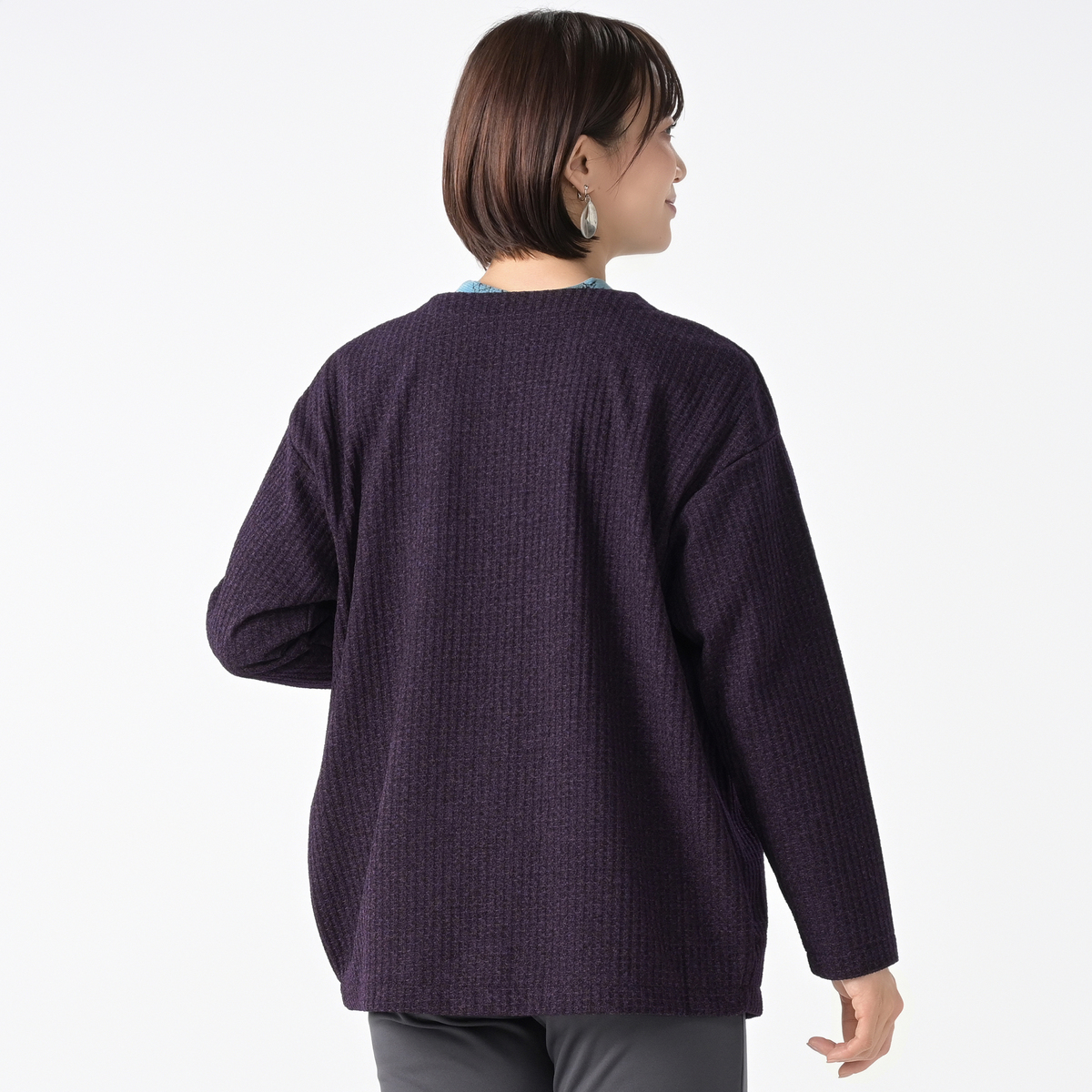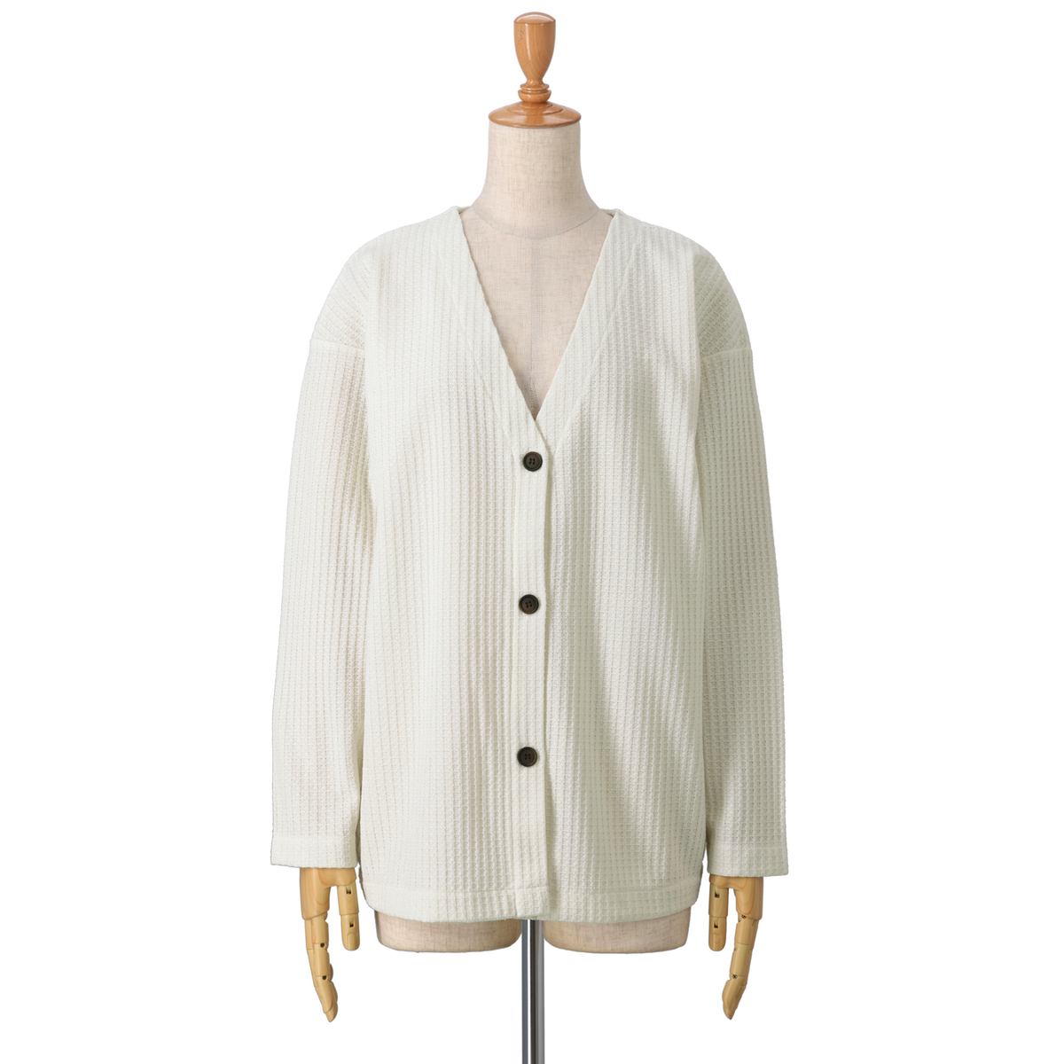 東レの機能素材、エアロウォーム(中空糸)を使ったカーディガンです。軽さと保温性が特徴の素材で、寒い季節も快適に着用いただけます