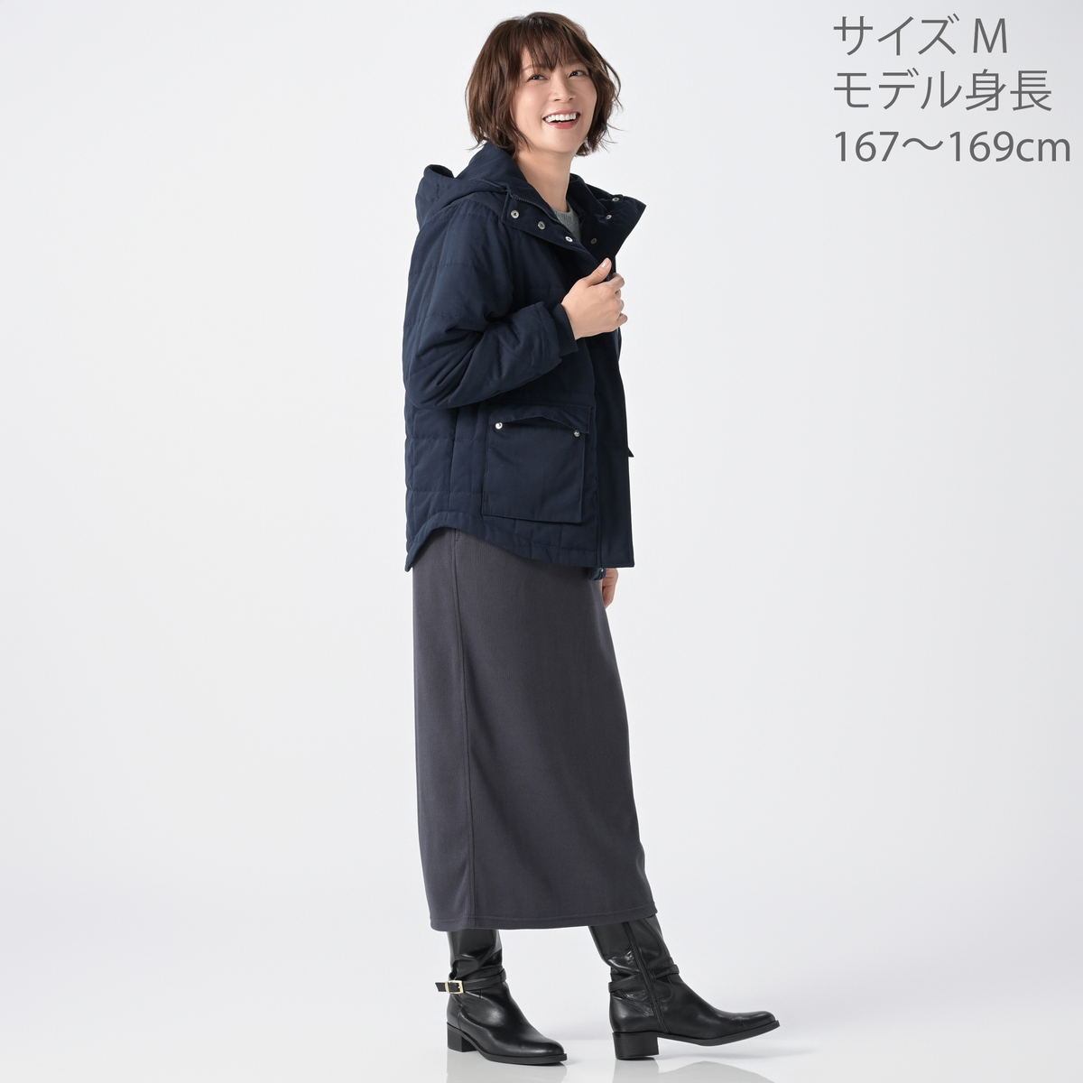 本当に軽くて着心地がとてもいいです。 ナビさんが「暑いくらい!」なような事をおっしゃってたので、真冬にならないと出番がないかな?と思って購入しましたが、ほんわかあったかい感じで、今の季節にちょうどいいと感じてます。 中に着る物を調節すれば、真冬でもいけそうな気がします。 裾のカーブもとてもいいですね。