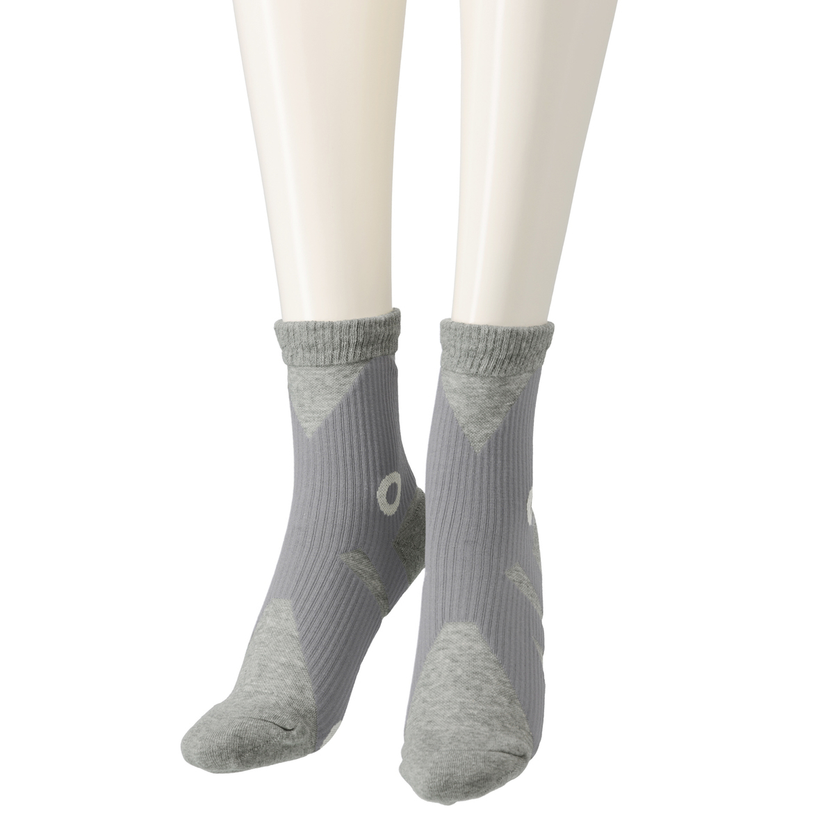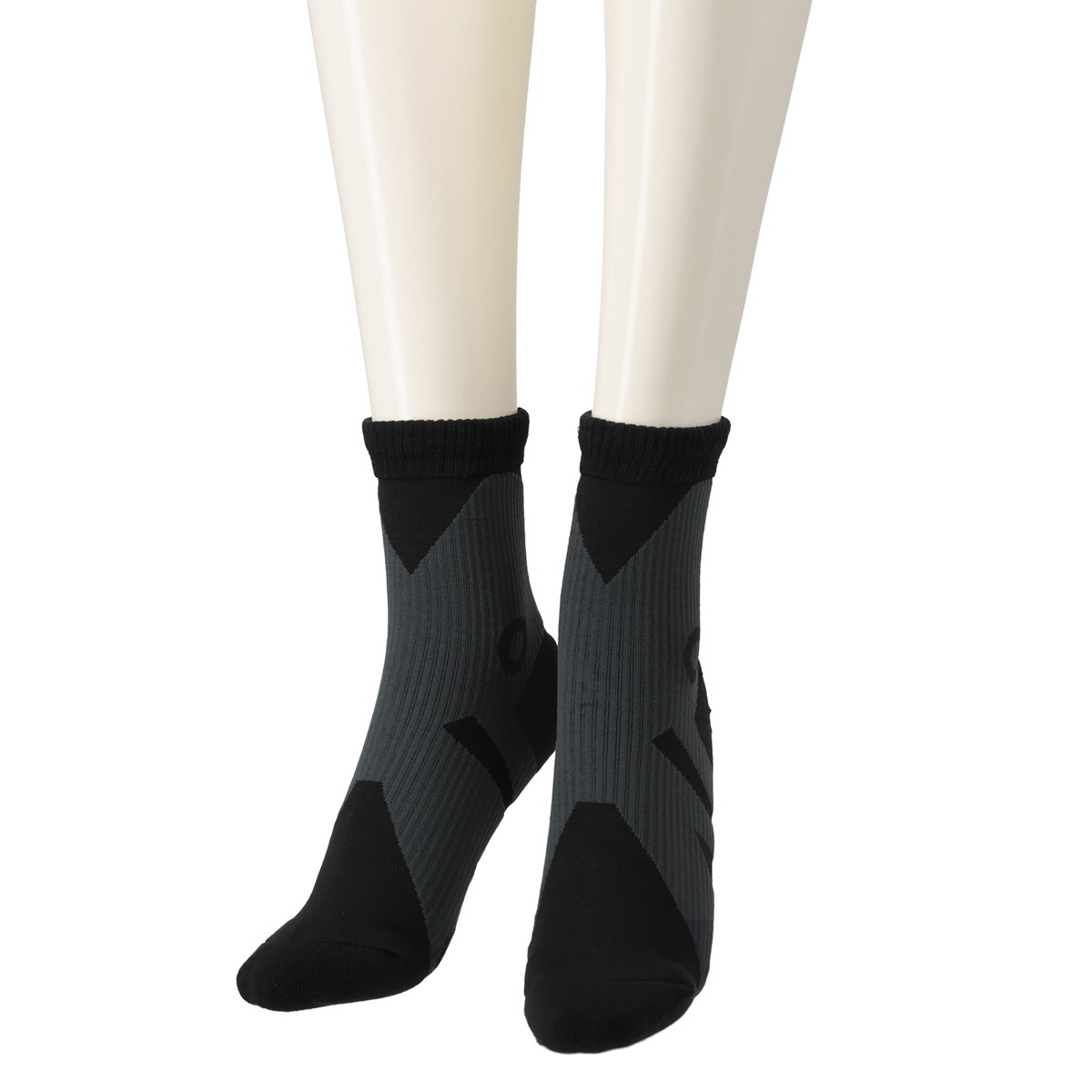 アスレティックトレーナー杉山ちなみさんと共同開発。足首、かかとをしっかり固定。足裏のアーチ・つま先を引き上げ、かかと・小趾球・母趾球をサポートするテーピングを施したソックスです