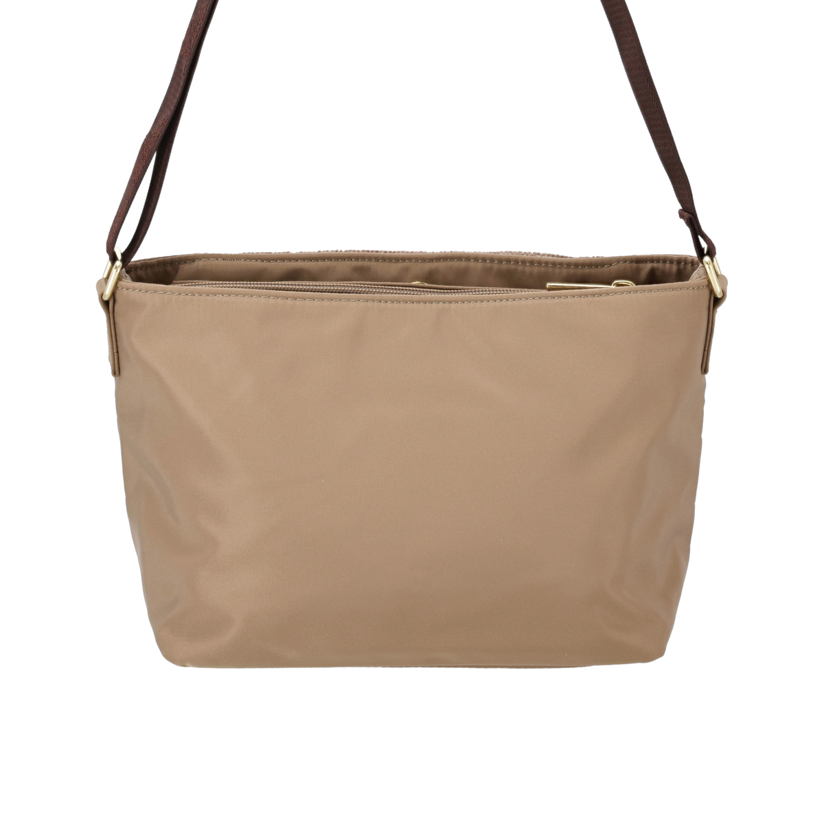 約255gと軽量で持ちやすく、小ぶりながらも約13cmのマチ付きで収納力のある仕様。2か所のアオリポケットで小物を整理して収納できます