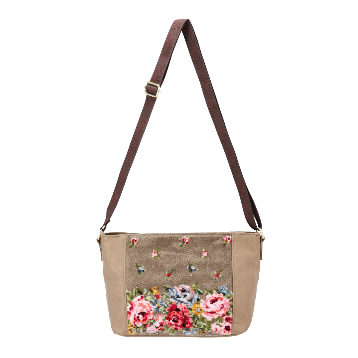 発色が美しい綿糸を使用した、伝統あるシェニール織を前面にあしらったショルダーバッグ。装いの華やかなポイントになってくれます