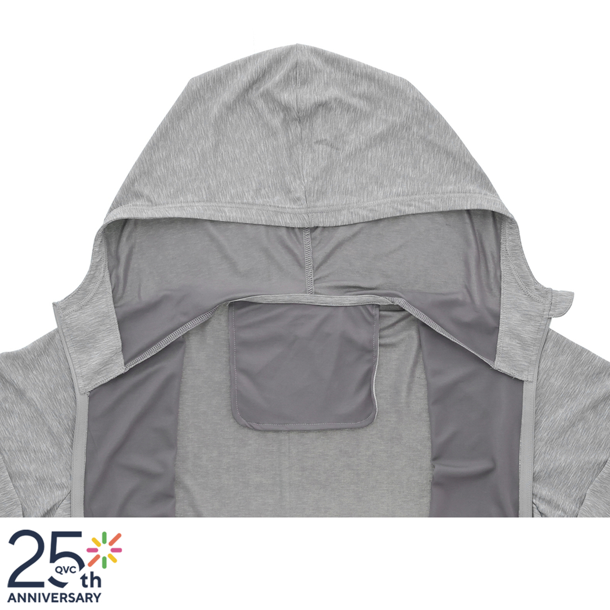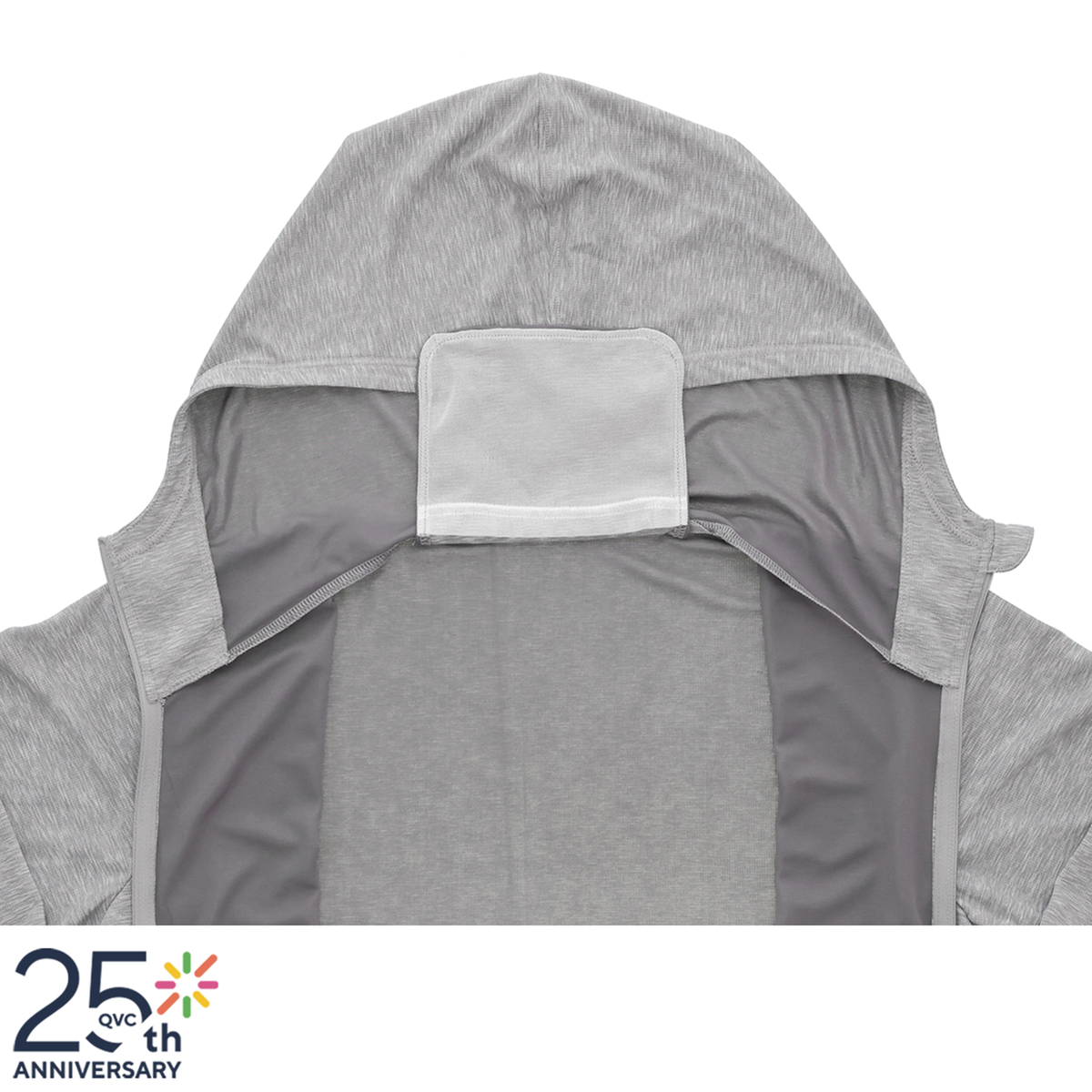 太陽の熱と紫外線を遮る素材を使用したパーカーです。UVカット・遮熱機能は生地構造によるもので、洗濯などの影響を受けにくく、さまざまなシーンで快適。外出時に持ち運べる便利な収納袋も付属しています