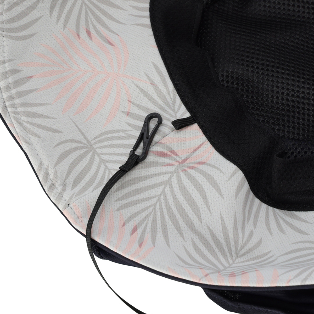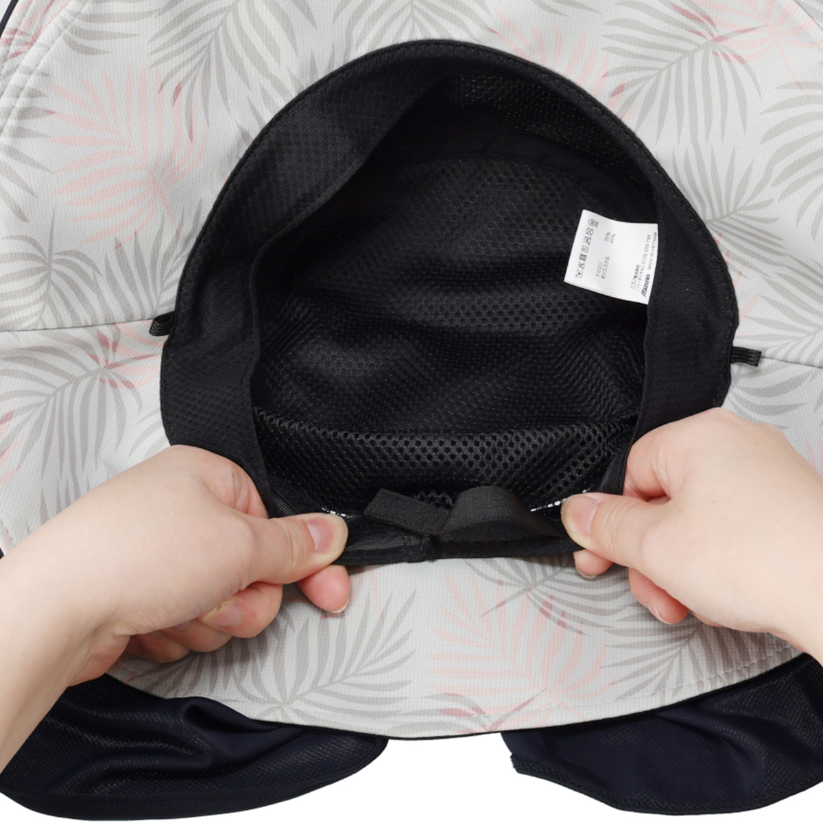 ハットの側面部分は風道をつけた構造で、風が通り抜けることで、より快適に着用いただけます。後頭部の内側はメッシュ生地で、熱がこもりにくい仕様。インナーアジャスター付きで、サイズ調整も可能です