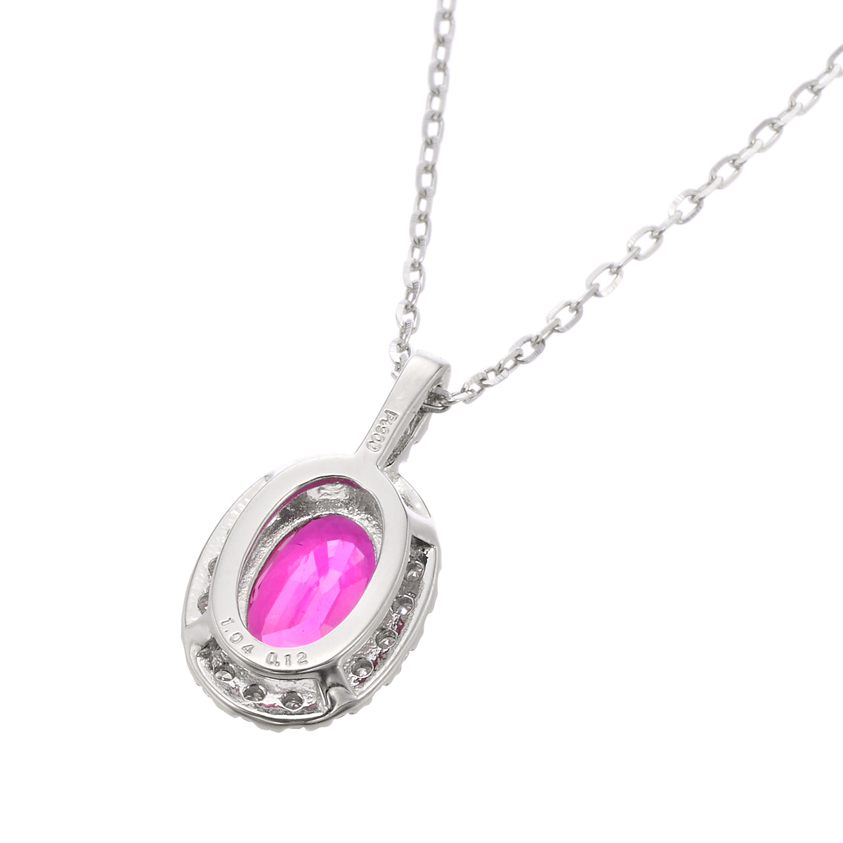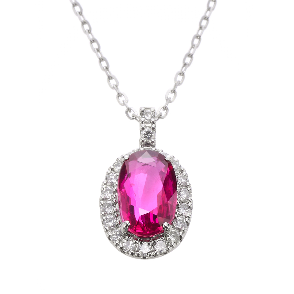 素材:[ルビー] オーバルシェイプ 爪留め 1石 1.00ctUP [ダイヤモンド] ラウンドシェイプ 爪留め 20石 合計0.12ctUP 総重量(約) 2.1g 長さ(約) 45.0cm バチカンの内径(約) 2.7×1.0mm 幅(約) 0.8mm チェーンの形状 アズキ 留具の形状 引き輪 アジャスターの有無 有(スライド式) チェーンの取り外し 可 ヘッドの縦×横(約) 13.0×7.0mm [地金]プラチナ900(本体)、プラチナ850(チェーン) [付属品]鑑別書 ■受注発注商品のためデザイン・価値に影響のない範囲で仕様が変わる場合がございます ■素材の大きさ・形・色合い、製品のサイズは1点1点多少異なります 【日本製】