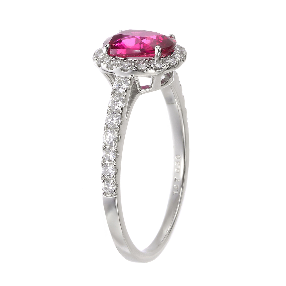 素材:[ルビー] オーバルシェイプ 爪留め 1石 1.00ctUP [ダイヤモンド] ラウンドシェイプ 爪留め 30石 合計0.30ctUP 最大幅(約) 8.5mm 最小幅(約) 1.0mm 総重量(約) 2.4g [地金]プラチナ900 [付属品]鑑別書 ■受注発注商品のためデザイン・価値に影響のない範囲で仕様が変わる場合がございます ■素材の大きさ・形・色合い、製品のサイズは1点1点多少異なります 【日本製】