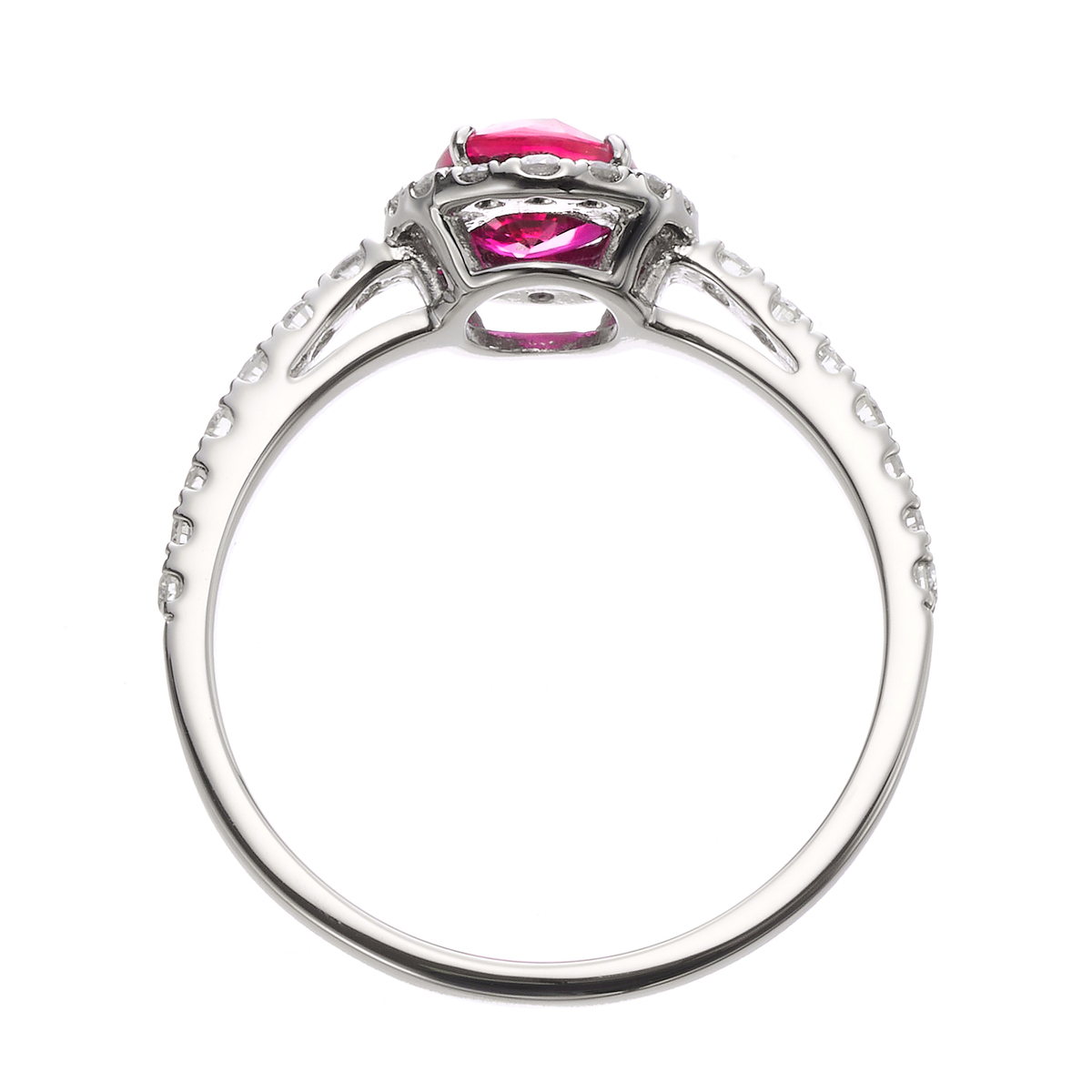 AIGSが鑑別した非加熱のピジョンブラッドルビーを使用したリング。ダイヤモンドを添えて、非加熱のピジョンブラッドルビーの存在感ある煌めきを引き立てる、華やかなデザインに仕上げました