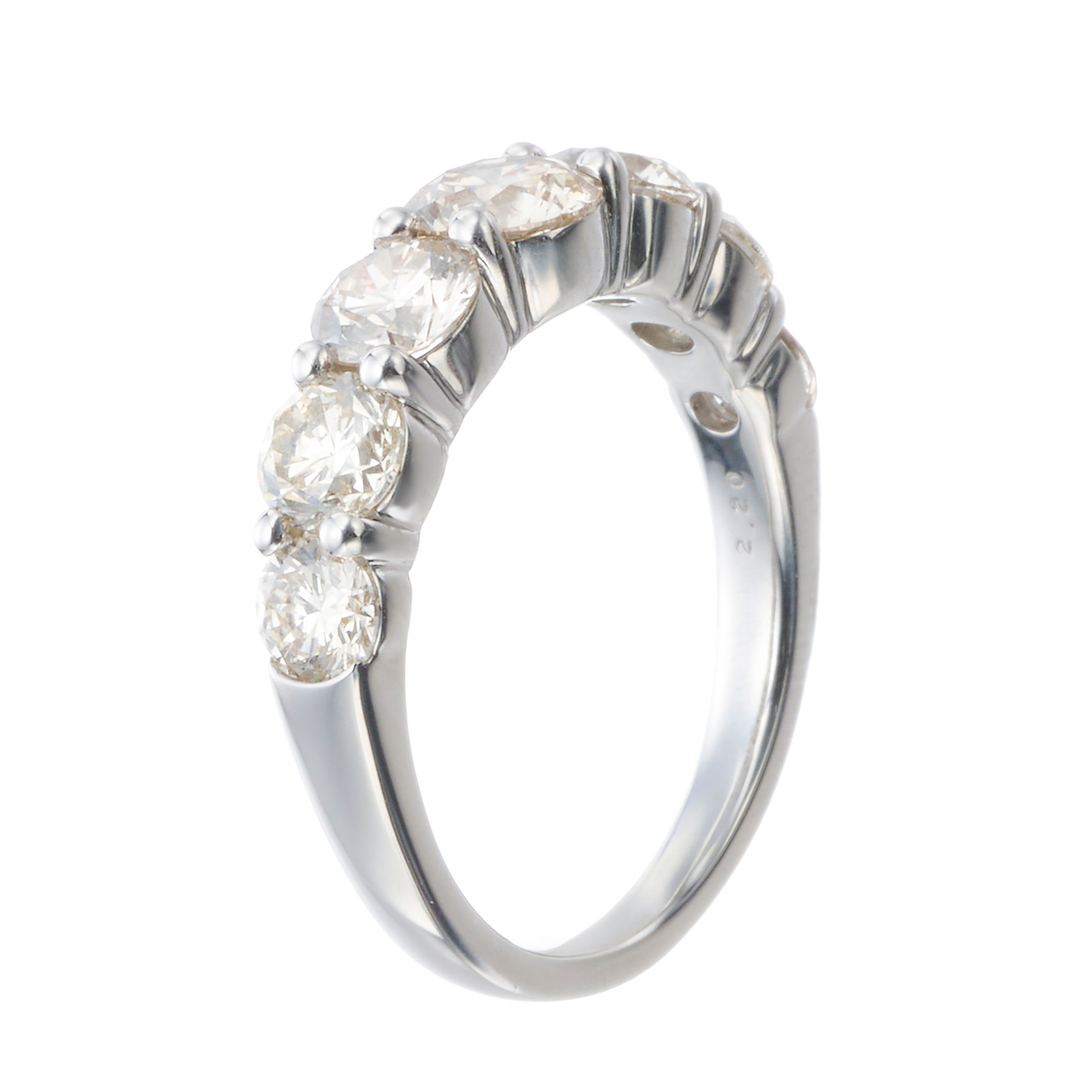 素材:[ダイヤモンド] ラウンドシェイプ 爪留め 7石 合計2.20ctUP 最大幅(約) 5.0mm 最小幅(約) 1.5mm 総重量(約) 4.7g [地金] プラチナ950 ■受注発注商品のためデザイン・価値に影響のない範囲で仕様が変わる場合がございます ■素材の大きさ・形・色合い、製品のサイズは1点1点多少異なります 【日本製】