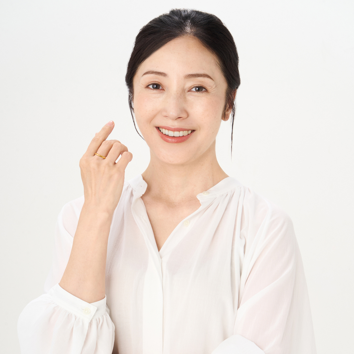 優しく指を包み込むツイストデザイン。純金ならではのしっとりとした輝きが、お手元にあたたかみを添えてくれます