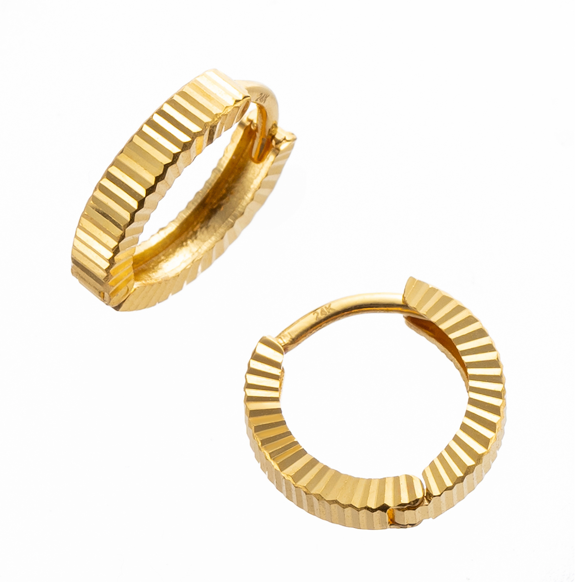 シンプルなフォルムに、純金の優雅な輝きを添えたフープピアス。丁寧なカットが光を柔らかく反射し、耳元に自然な華やかさをもたらします。日常使いにも合わせやすいアイテムです