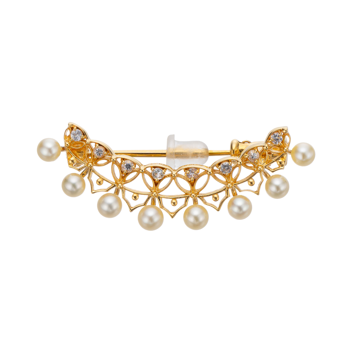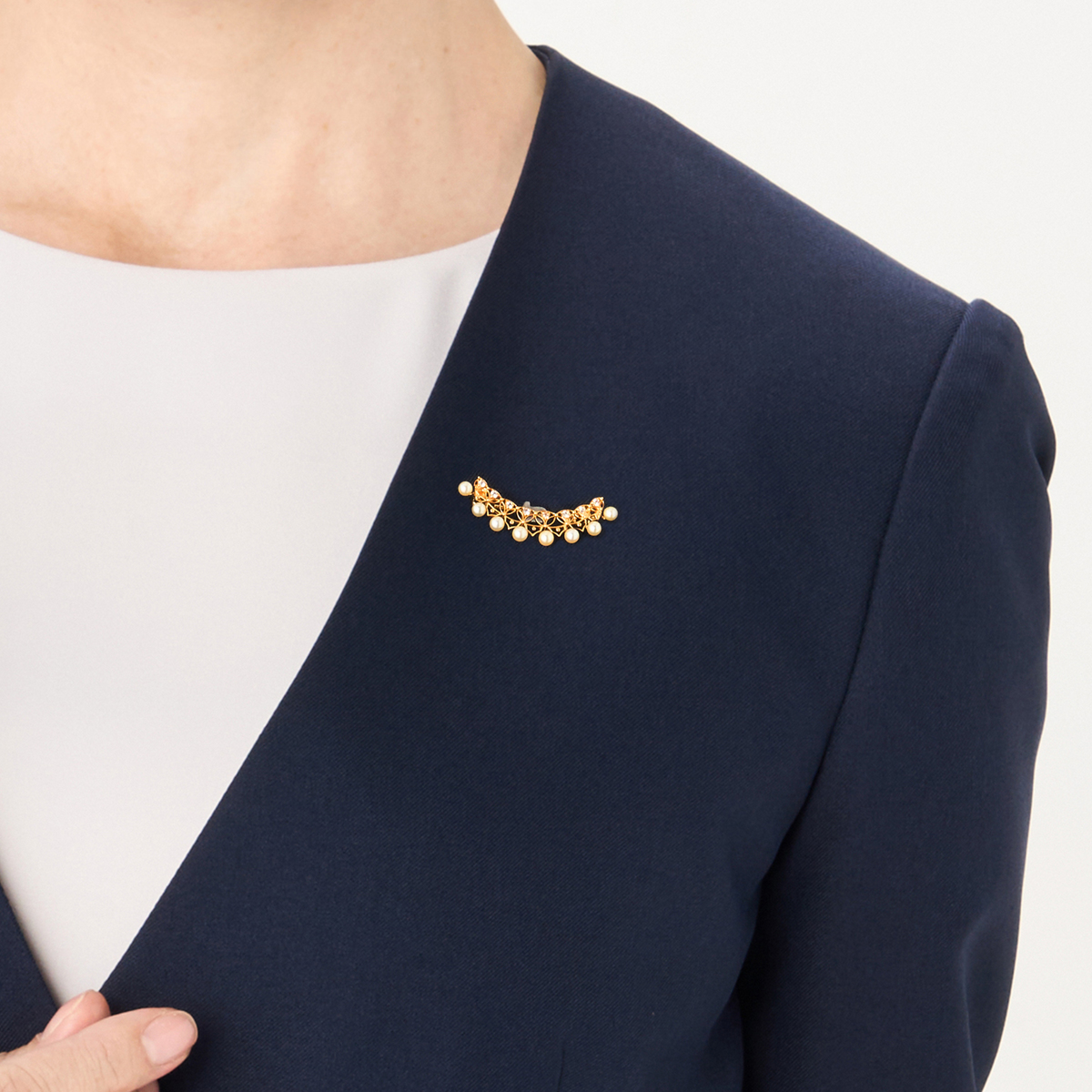 真珠総合研究所にテリがトップグレードと認められた、ベトナム・ハロン湾産のシャンパンカラーアコヤ真珠を使用したブローチ。真珠総合研究所に無調色と認められたアコヤ真珠の美しさをお楽しみいただけます