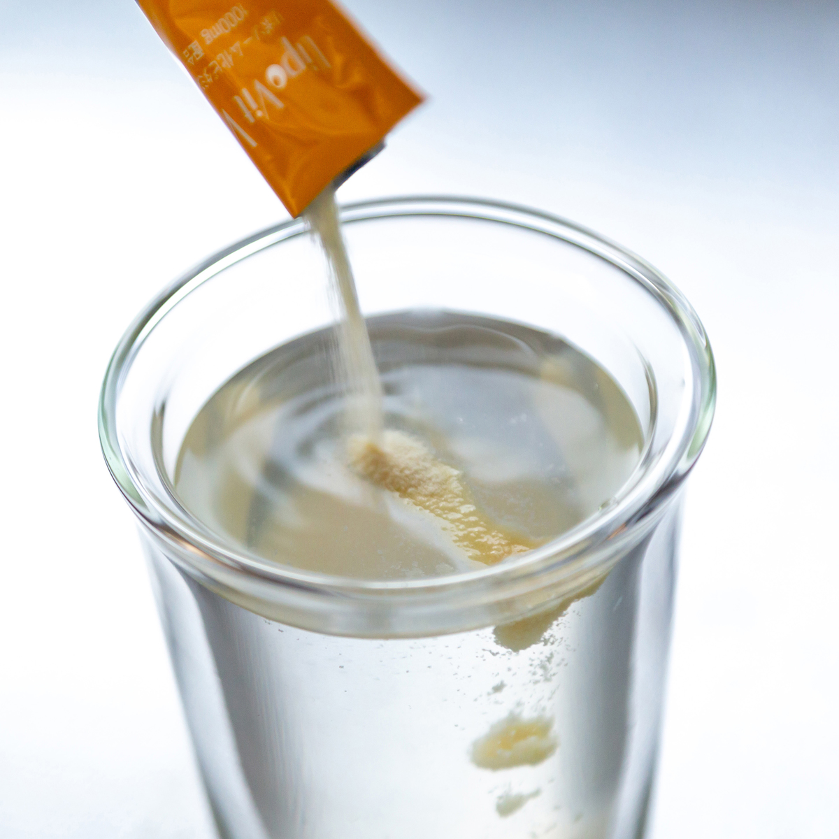リポソーム型ビタミンCを配合したリポビットVC。粉末状で常温保存が可能なうえ、個包装なので外出時や旅行先でも持ち運びやすく、続けやすさを考えた設計です