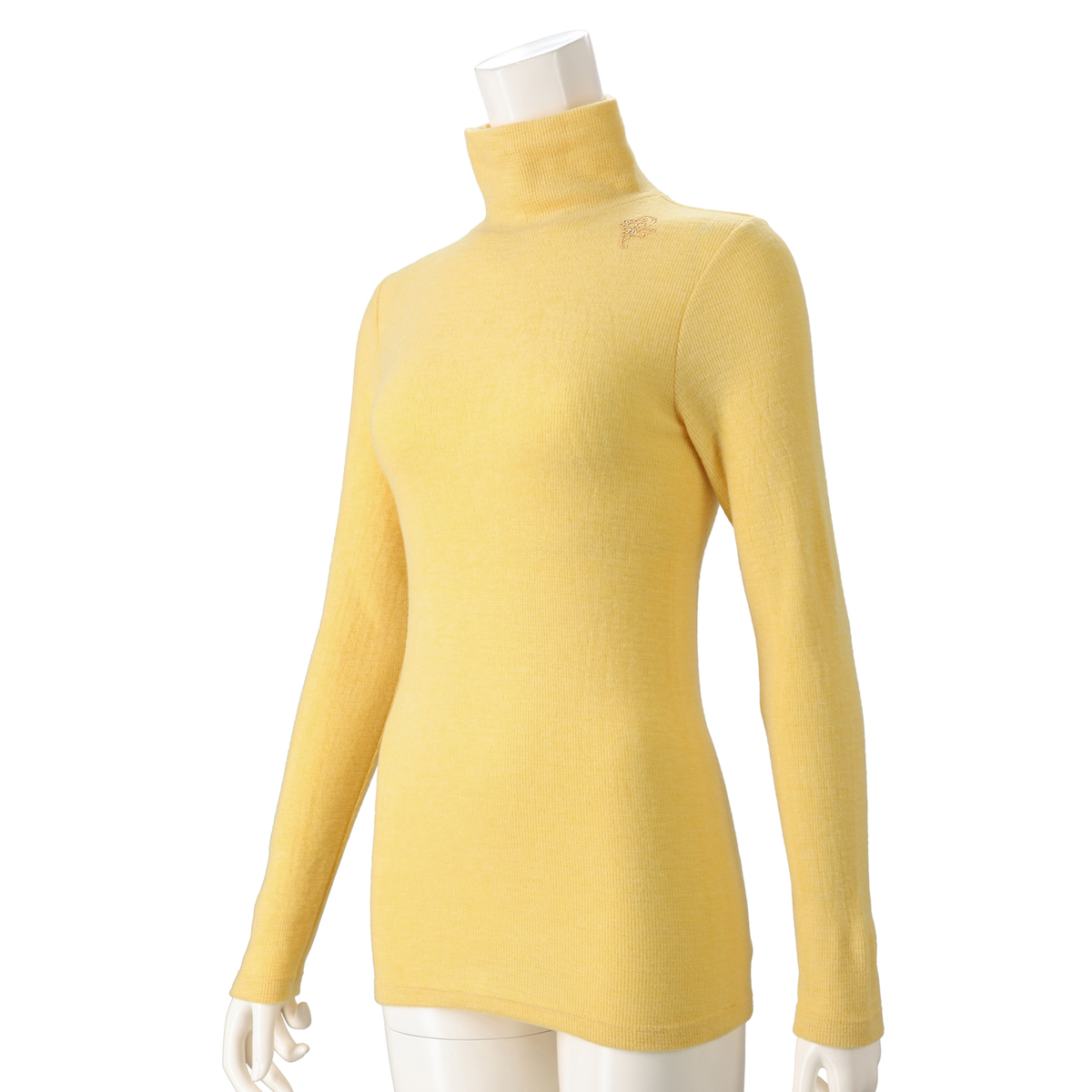着丈はヒップを包む長めの丈感。重ね着してももたつきにくい程良い厚みで、暖かな着心地です。首周りはネックラインのカーブに工夫を凝らし、着用時につっぱり感を感じにくい仕上がりです
