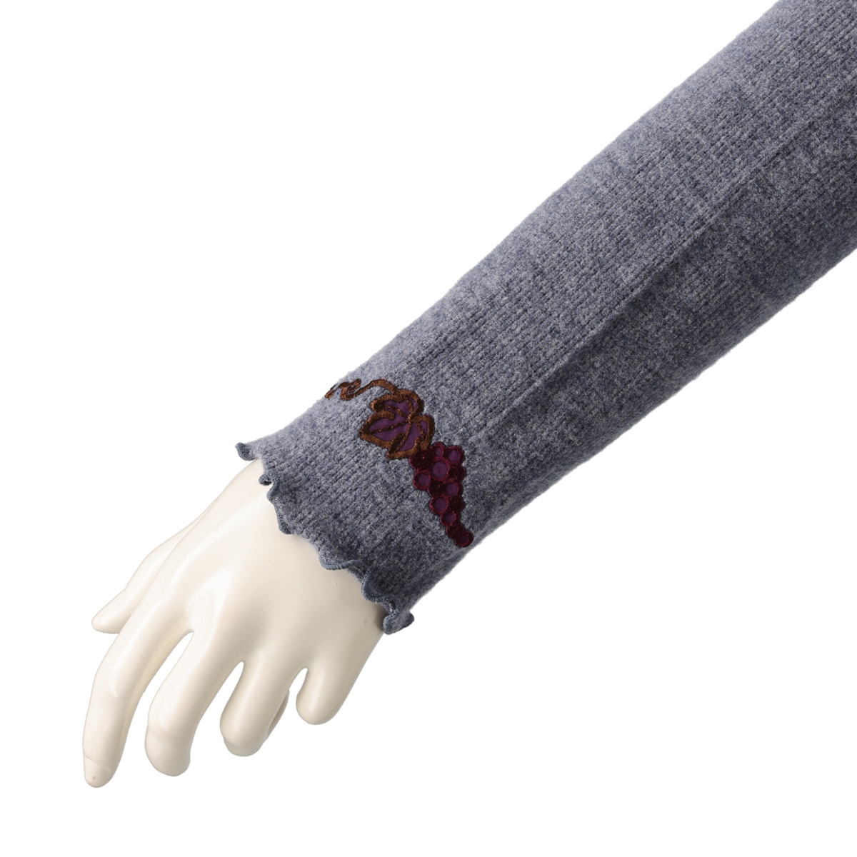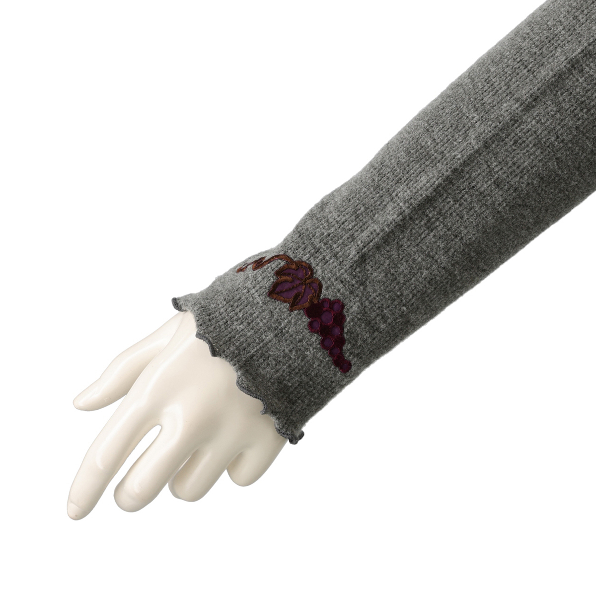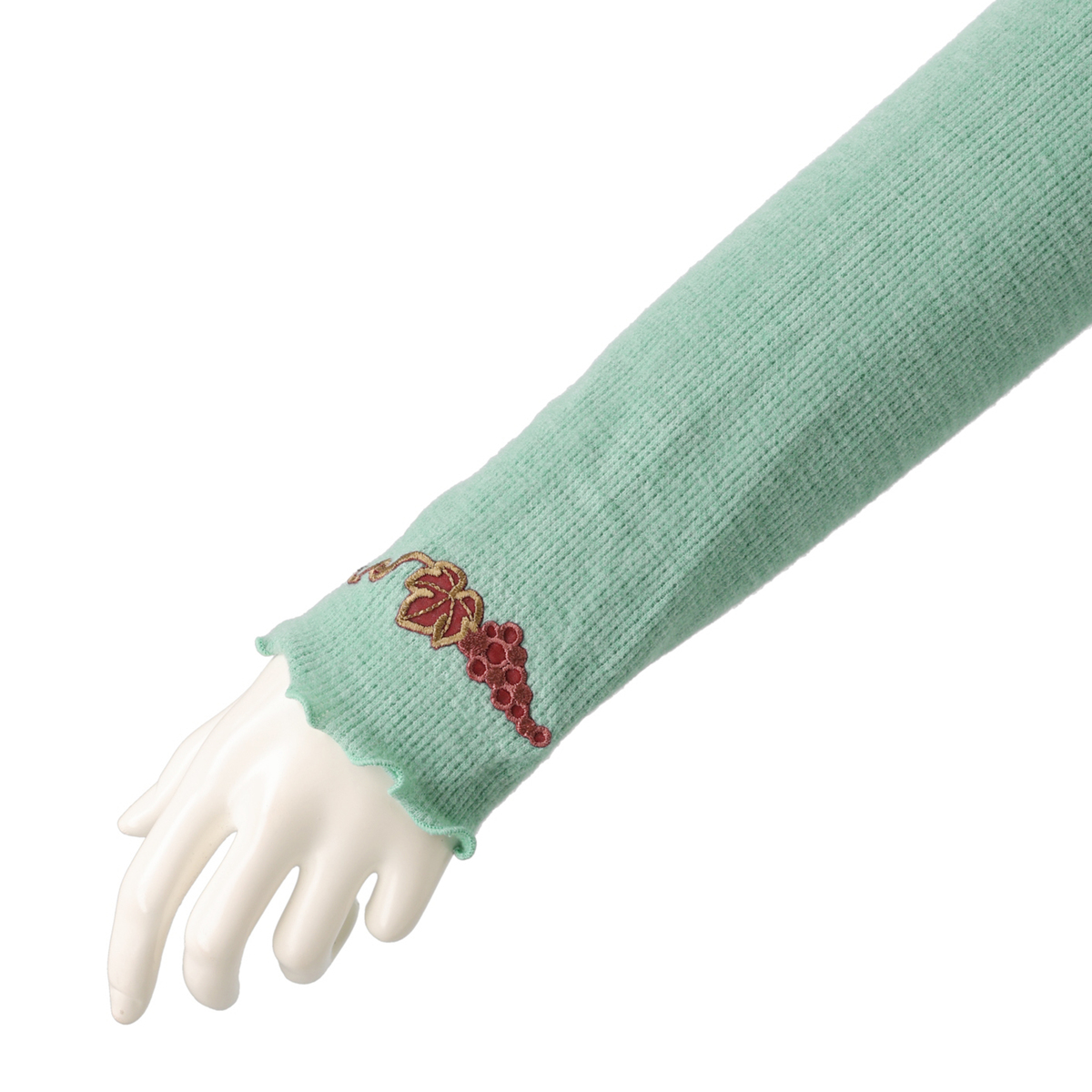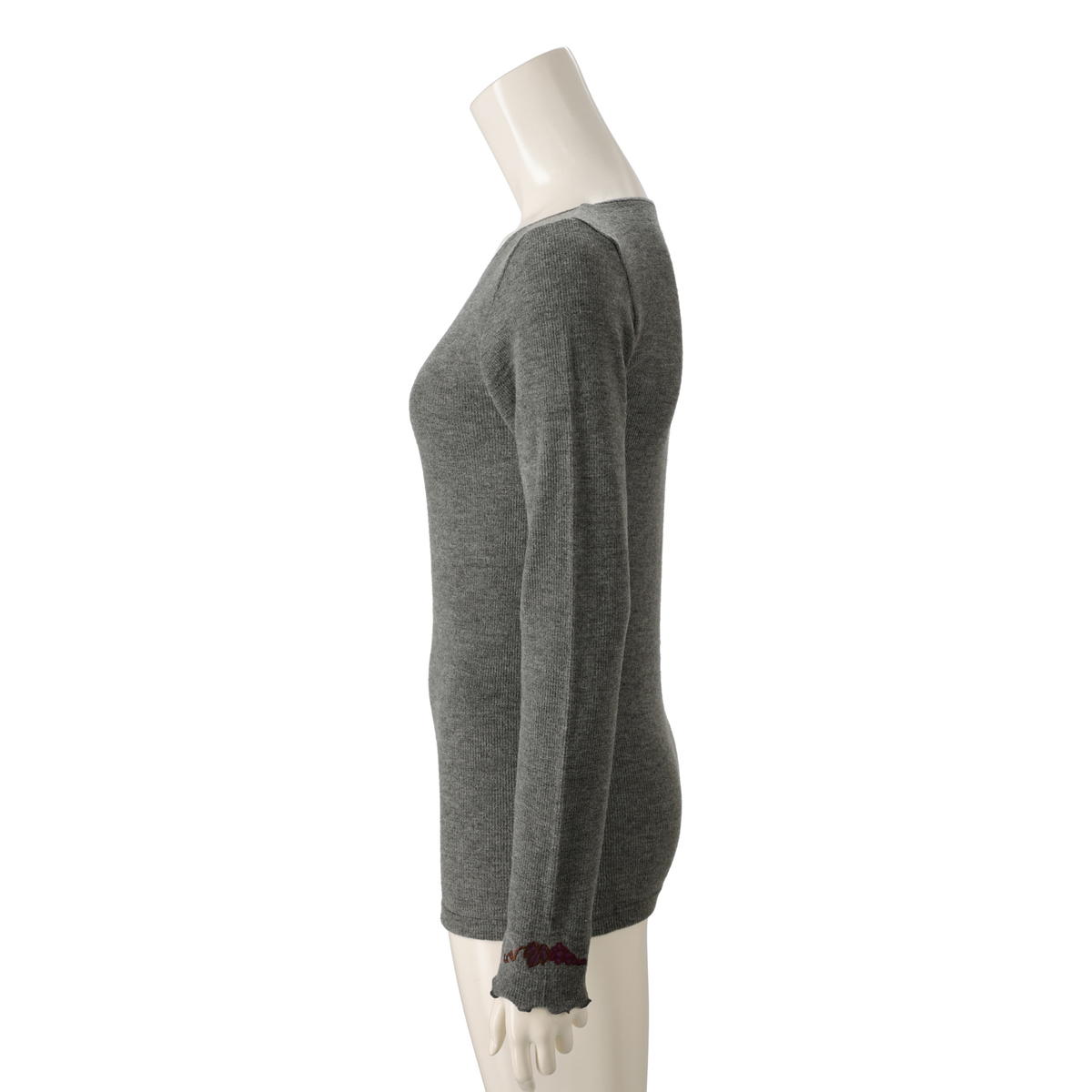 着丈はヒップを包む長めの丈感。重ね着してももたつきにくい程良い厚みで、暖かな着心地です。袖の左手首部分にブレスレット風のアップリケをあしらい、さりげなくおしゃれなポイントになっています