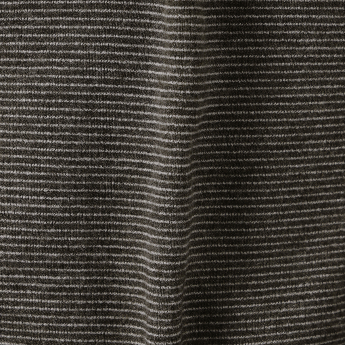 筒状の丸胴生地をそのまま身頃に使用しているので身頃に脇の縫い目が無く、伸びてフィットします。身生地の編み立ては和歌山県、染色起毛加工は三重県、縫製も日本で行った日本製。丸胴の両面に施した起毛加工は、日本国内でも限られた工場でしか出来ない技術です