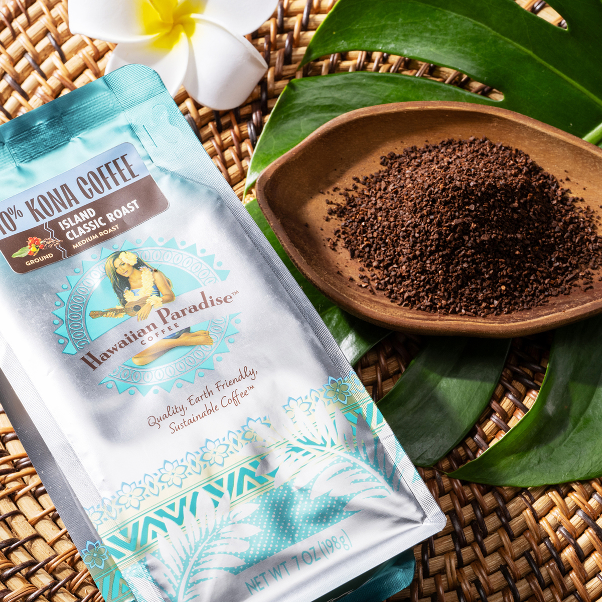 ハワイ島コナで栽培されているコナコーヒーを10%使用したブレンドコーヒー。袋を開けた瞬間に漂うハワイの香りを体感。伝統的なロースト手法でコーヒー本来の深みとコクが味わえます