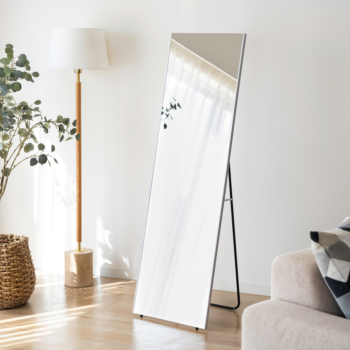 軽くて割れないスタンドミラ-45×150cm専用クロス付