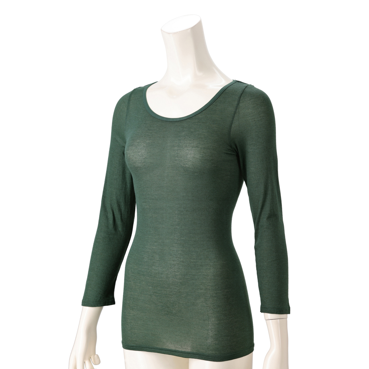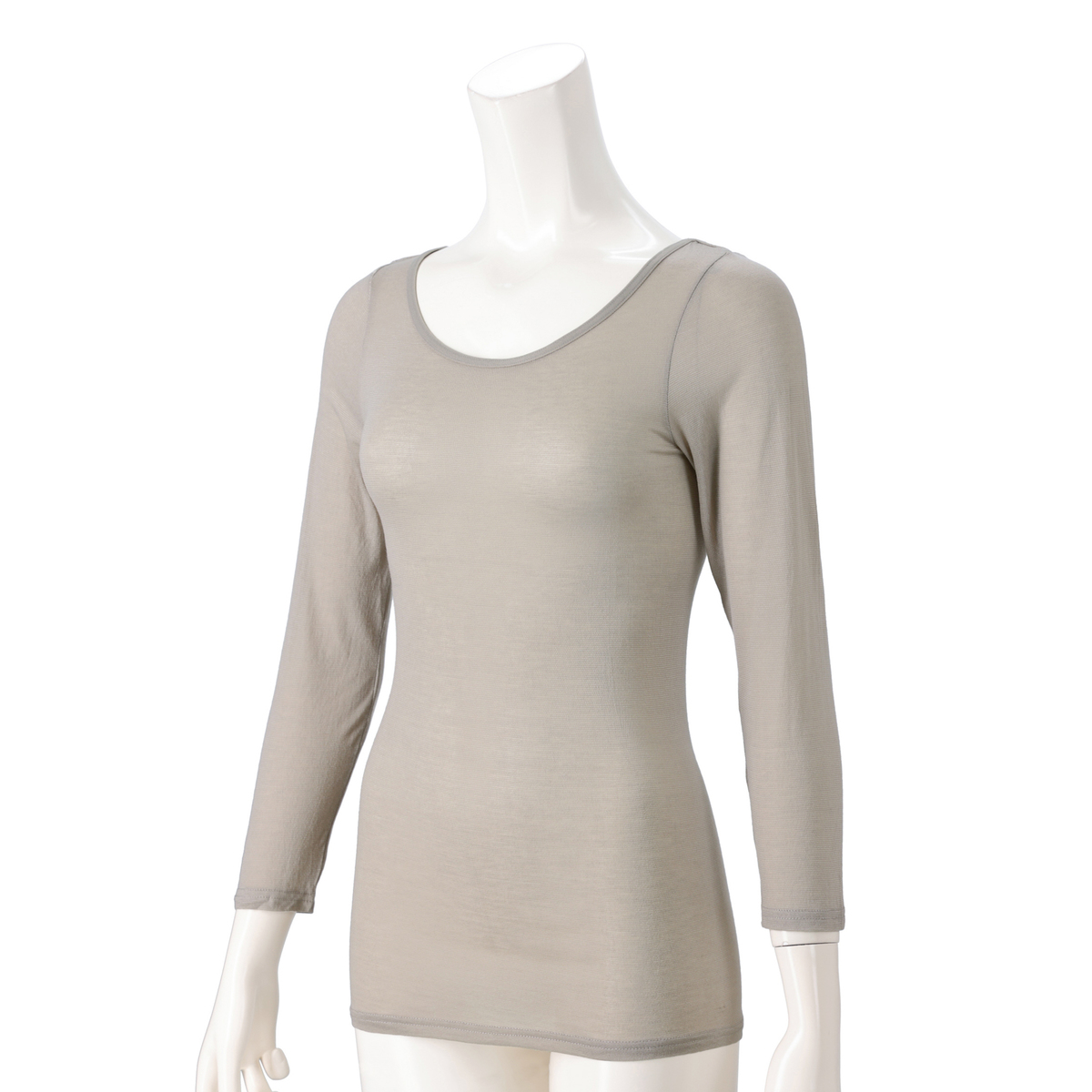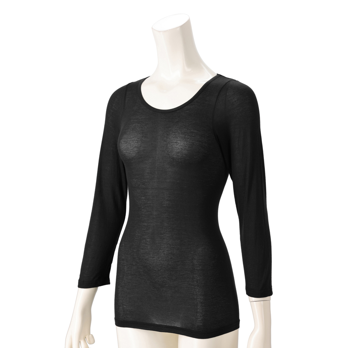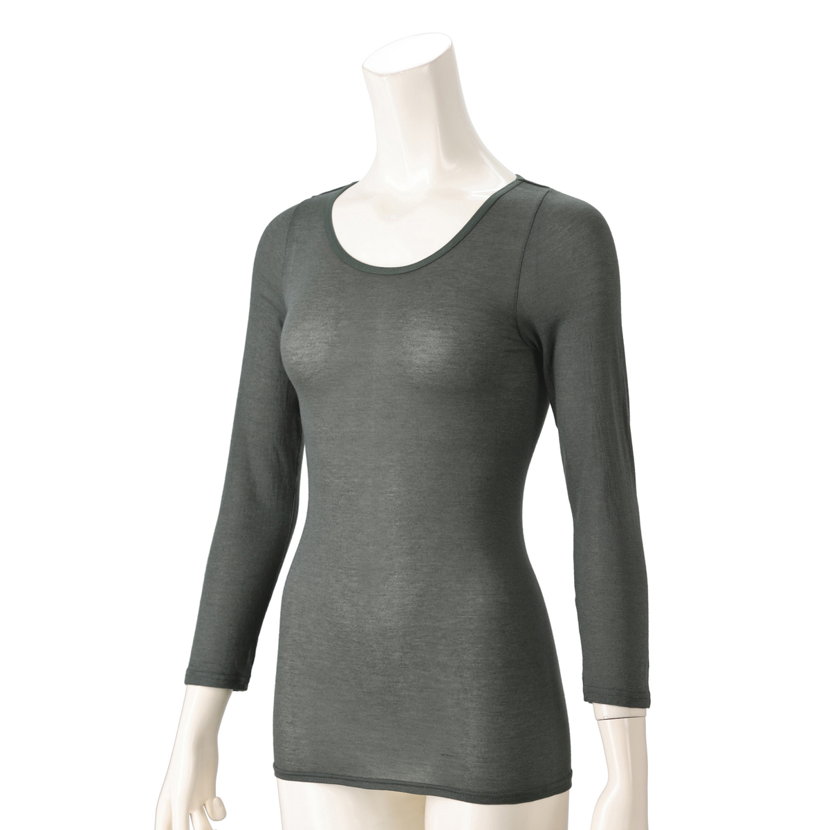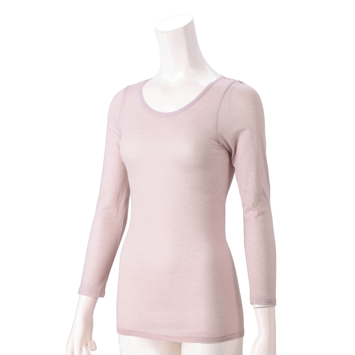 身生地にアクリル混素材を使用したクルーネック長袖インナー。薄くて伸びる生地により窮屈感なく体にフィットします