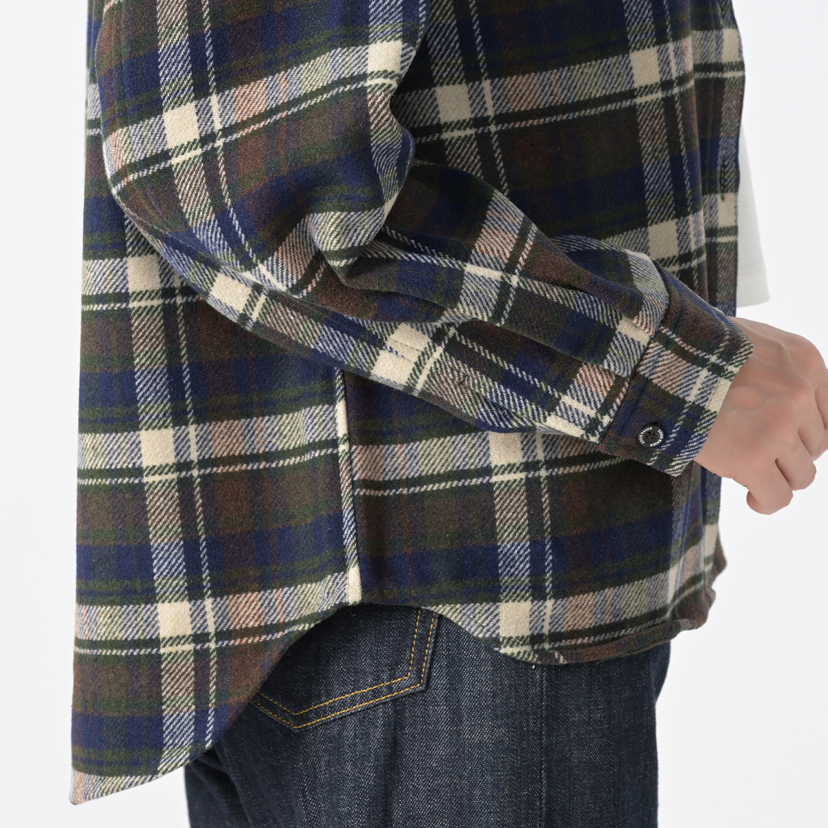 カジュアルコーデに活躍してくれるチェックシャツ。しっかりとした地厚の生地で暖かな着心地です
