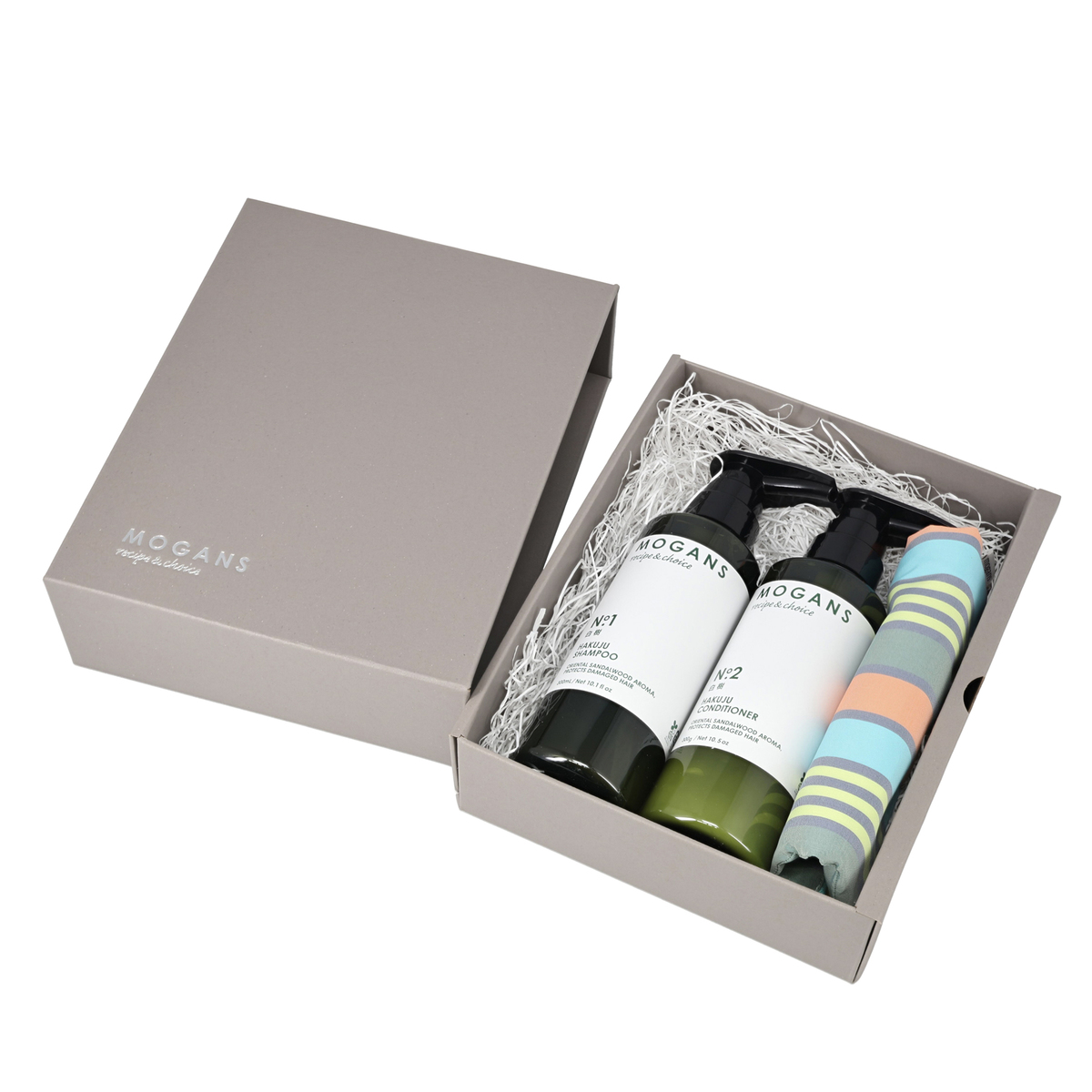 複数の植物油の黄金配合比*で、ツヤやコシ・ふんわりボリューム感のある、サラサラな髪へ。特にボリュームにお悩みの細毛・猫毛の方におすすめのシャンプーと、コンディショナー、ポーチがついたギフトセットです