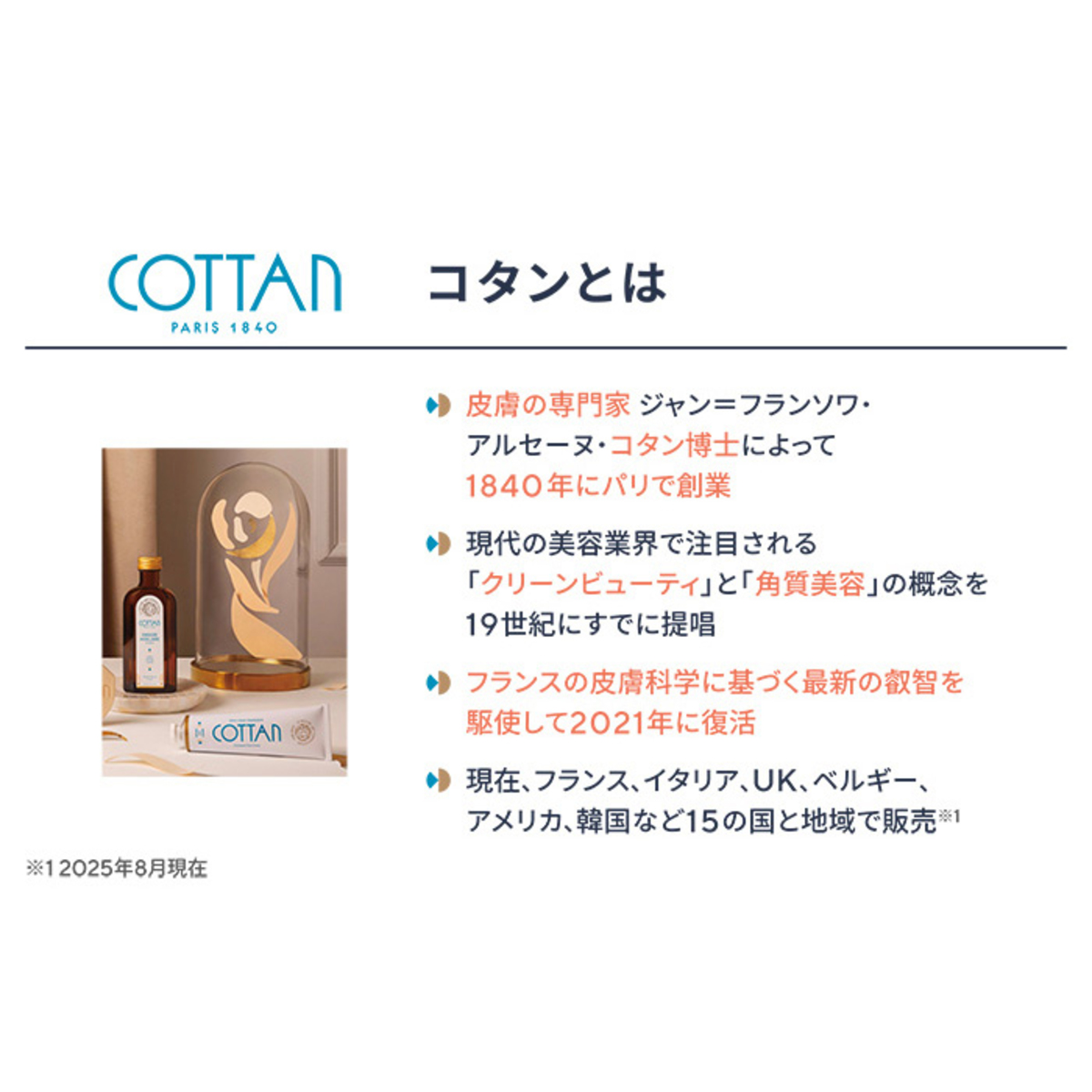 [商品内容] コタン クレーム 60ml [使用方法] 洗顔後の清潔な肌に、適量をなじませてください [注意事項] ※お肌に異常が生じていないかよく注意して使用してください。お肌に合わない場合は、ご使用をおやめください。そのまま使用を続けますと、症状を悪化させることがありますので、皮膚科専門医師等にご相談ください ※使用中、赤味、はれ、かゆみ、刺激、色抜け(白斑等)や黒ずみ等の異常があらわれた場合、傷やはれもの、しっしん等、異常のある部位にはお使いにならないでください ※目に入らないようにご注意ください。万一、目に入った場合には、すぐに水またはぬるま湯で洗ってください ※乳幼児の手の届かないところに保管してください ※極端に高温又は低温の場所、直射日光のあたる場所には保管しないでください 【フランス製】 [成分]水、ヤシ油脂肪酸BG、ステアリン酸、パルミチン酸、ペンチレングリコール、グリセリン、(C15-19)アルカン、ホホバ種子油、キサンタンガム、スクワレン、トコフェロール、シトステロール、香料、水酸化K