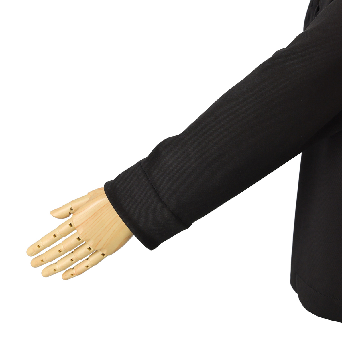 上品な光沢感と落ち感、シルクのようななめらかな肌触りが特徴。Makana na kathyならではのブラックフォーマルを追求した素材です