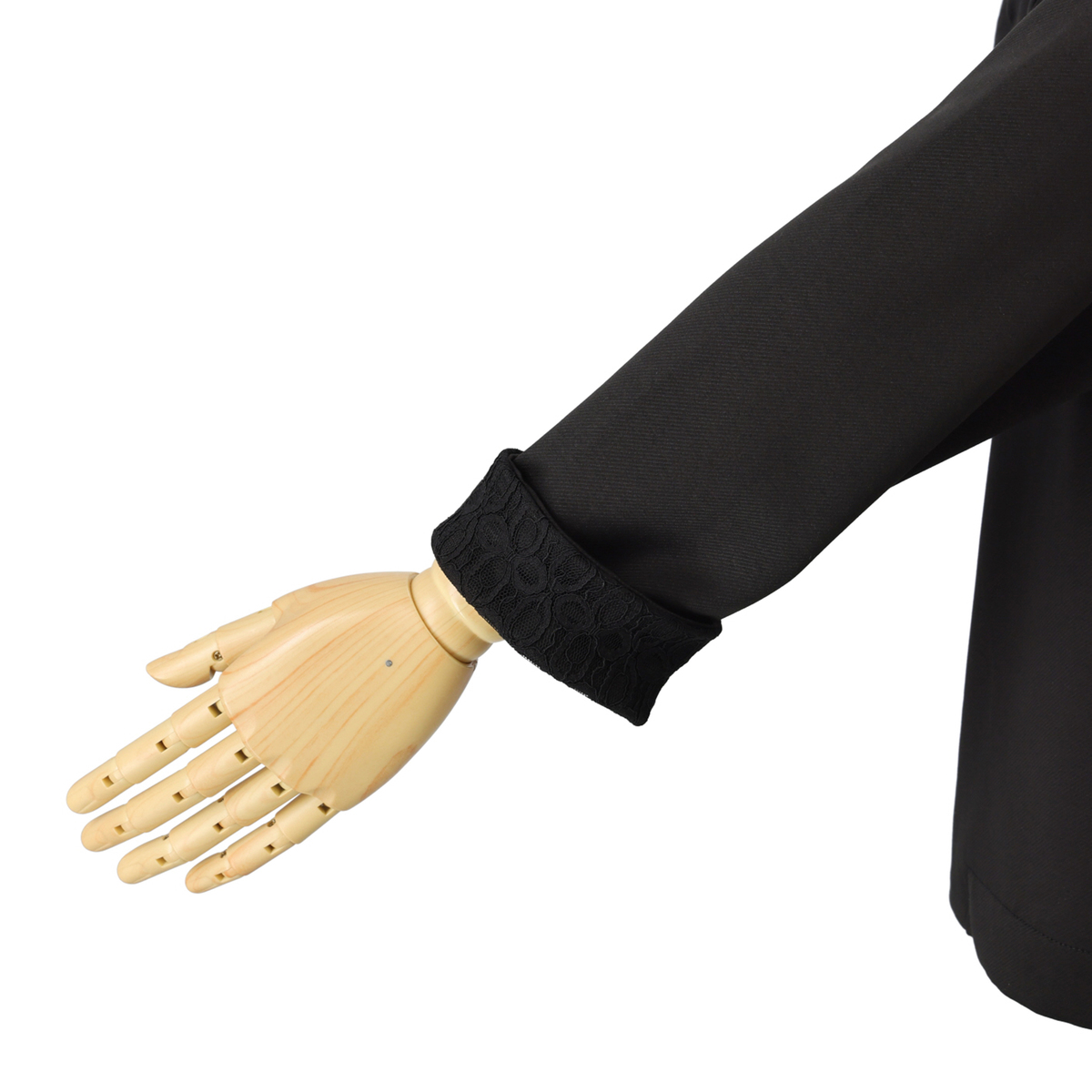[商品寸法(ヌード)cm] サイズ バスト 着丈 肩幅 00 : 94(74〜86) 63 36 0 : 104(84〜96) 64 38 1 : 114(94〜106) 65 40 2 : 126(104〜116) 65.5 42 3 : 138(114〜126) 66 44 サイズ 袖丈 00 : 58 0 : 58 1 : 58 2 : 58 3 : 58 [素材] 本体:ポリエステル60% 再生繊維(セルロース)20% 綿15% ポリウレタン5% レース部分:レーヨン40% 綿30% ナイロン30% [お手入れ] 手洗い可 [注意事項] ※商品寸法の誤差は多少発生します。ご了承下さい ※洗濯後は重ね置きしないで下さい ※洗濯後はすぐに脱水し、形を整えて干して下さい。長時間、水につけたままにしないで下さい ※素材の特性上、着用や洗濯・クリーニング時の摩擦により毛羽立ち、毛玉が発生します。その際はお早めに毛玉取り器等で手入れをして下さい ※直射日光や蛍光灯の影響で変色することがありますのでご了承下さい ※濃色製品は着用中の摩擦により色移りすることがあります。また、雨や汗等で濡れた状態で着用すると色移りすることがあります。その際はお早めに洗濯をして下さい ※洗濯やクリーニングにより徐々に色あせします。また、色落ちすることがありますので、他の物と分けて洗って下さい ※デリケートな素材を使用していますので、爪やアクセサリーなどの引っ掛かりによりキズがつきやすくなっております。縫目や生地を強く引っ張らないよう注意して下さい ※付属部分にアイロンを当てないで下さい 【中国製】