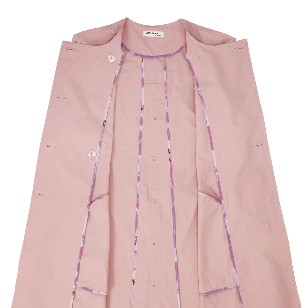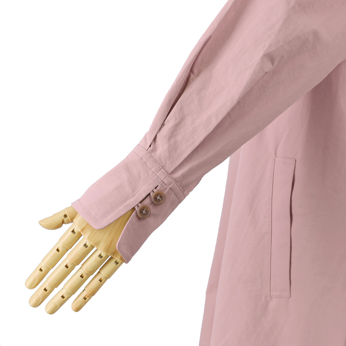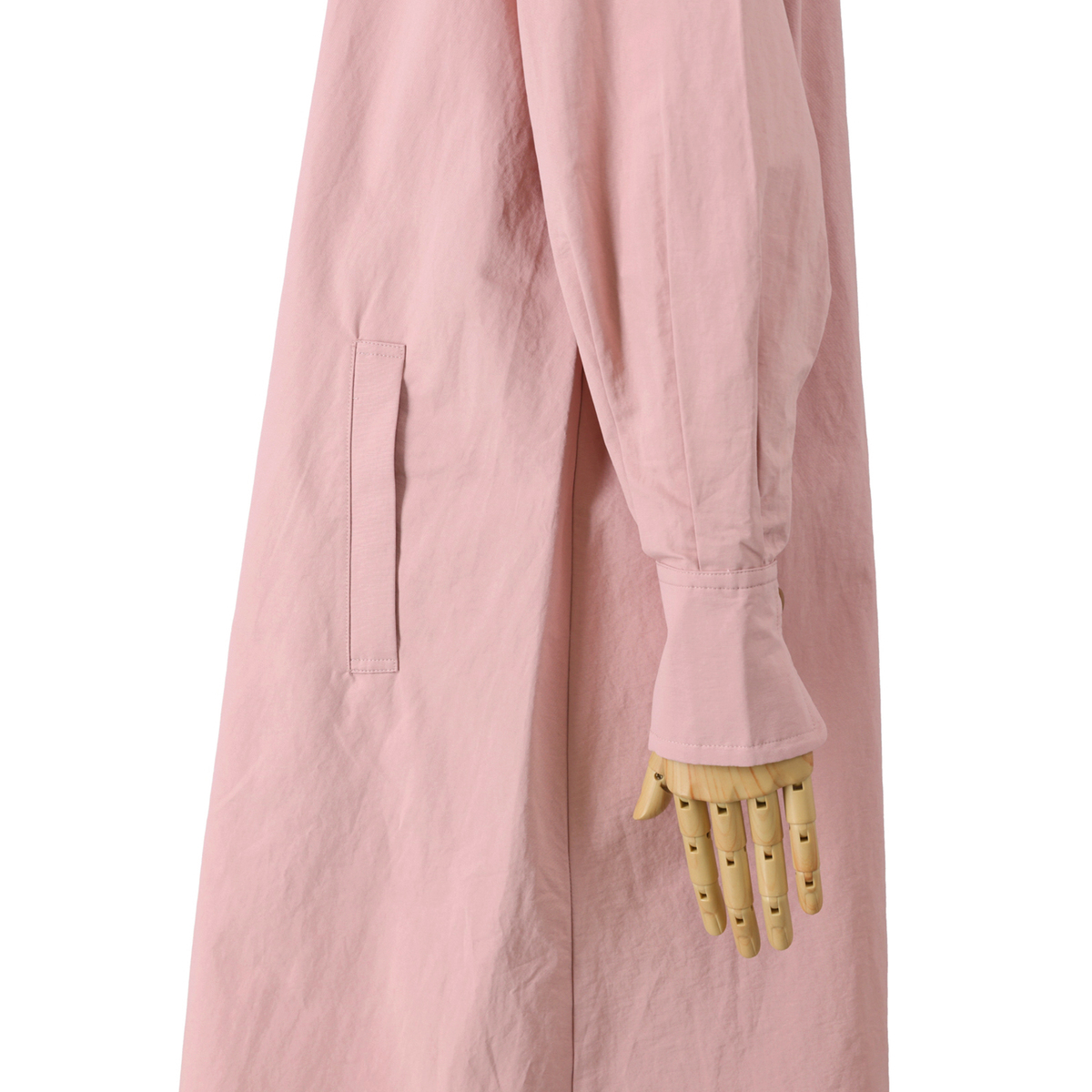 ヴィンテージタフタを使用。程よいワッシャー感でこなれた雰囲気を引き出します。ピーチスキンのようななめらかな表面が上品さを添え、柔らかな手触りながら適度なハリがあり、シルエットをきれいに構築します