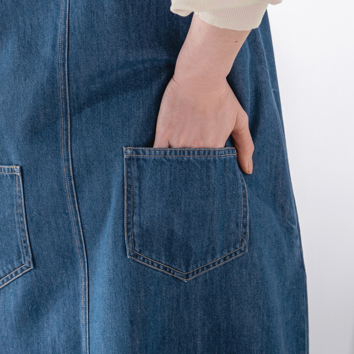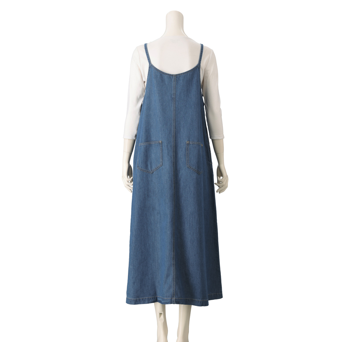 [商品寸法(ヌード)cm] サイズ バスト 身丈 S : 91(72〜80) 112.5 M : 97(79〜87) 114.5 L : 103(86〜94) 116.5 LL : 109(93〜101) 118.5 3L : 115(100〜108) 120.5 サイズ ウエスト ヒップ S : (58〜64) (82〜90) M : (64〜70) (87〜95) L : (69〜77) (92〜100) LL : (77〜85) (97〜105) 3L : (85〜93) (102〜110) [素材] 綿62% 再生繊維(セルロース)38% [仕様] ボタン・ホック:有(フロント飾り) ファスナー:無 ポケット:有(脇、後ろ身頃) スリット:無 [お手入れ] 洗濯機洗い可 [注意事項] ※商品寸法の誤差は多少発生します。ご了承下さい ※洗濯時はネットを使用してください ※素材の特性上、洗濯や摩擦により表面が毛羽立ち白化する恐れがあります。ご注意ください ※染料の性質上、洗えば洗うほど色が落ちていきます ※洗濯により染液が濁りますので他のものとわけて洗ってください ※洗うごとに生まれる独得の色落ちの変化をお楽しみください ※汗や摩擦により、色落ちしたり他い色移りすることがありますのでご注意ください ※ソファや車のシート類、白、ベージュ等のバッグにも色移りすることがありますのでご注意ください ※この製品は縫製後、製品洗いをしています。その為に多少のゆがみやしわがでているのが特徴です。また、一枚一枚サイズや色調が若干異なります。素材の特性上、着用や洗濯を繰り返すことでも発生することがあります ※アイロンは当て布を使用して掛けてください ※附属・装飾部分アイロン禁止 ※紫外線や湿度の影響により、黄変(黄色に変色)することがありますが、水洗いにより目立たなくなります ※高温高湿の場所は避け、長時間同じ場所に保管しないでください 【カンボジア製】