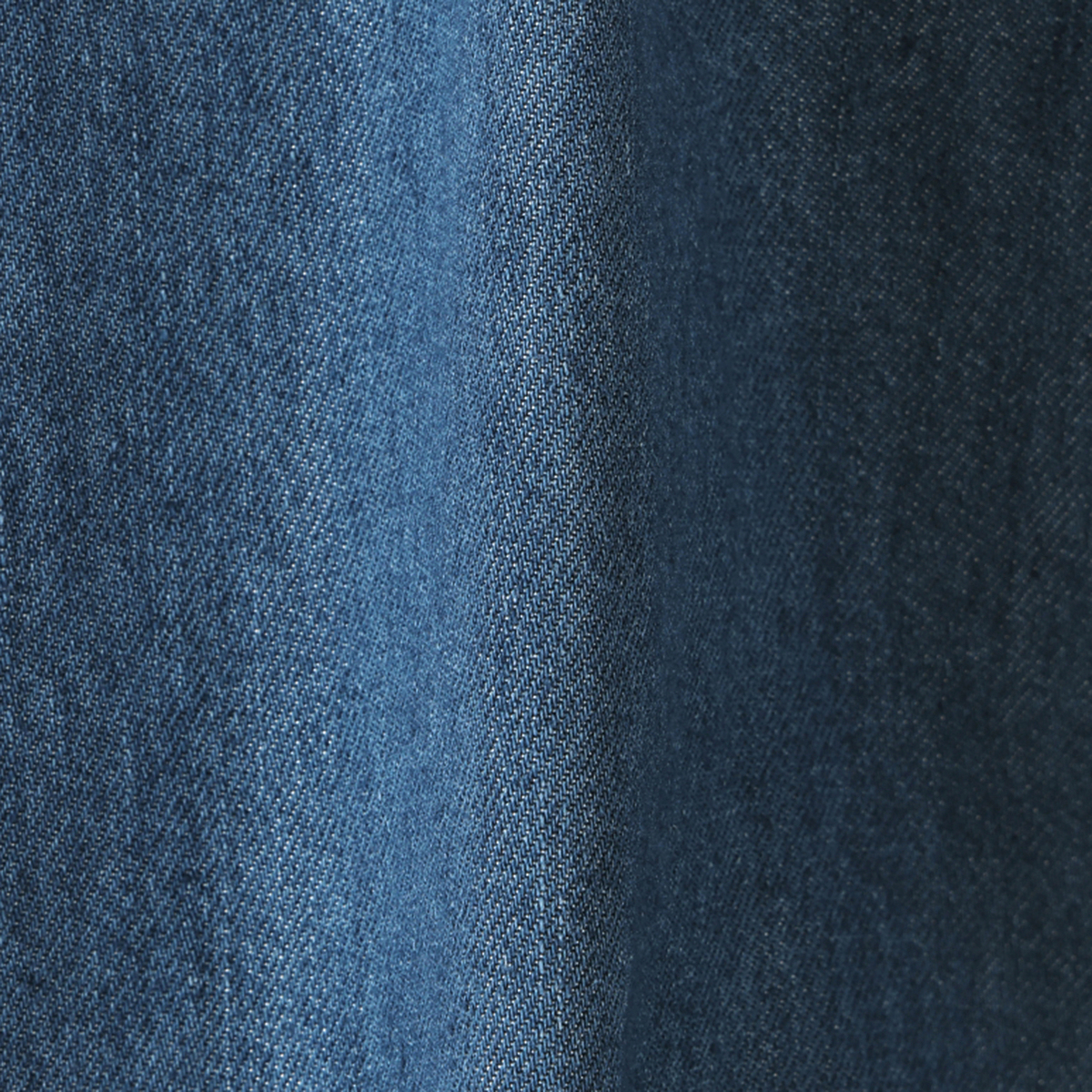 落ち感のいい柔らかいデニム生地で、太目のスラブも入っている本格デニムです。製品でバイオウォッシュしているため、洗いならではの表情が特徴です。ピリング試験4級の毛玉になりにくい生地を使い、ご家庭で洗濯可能です