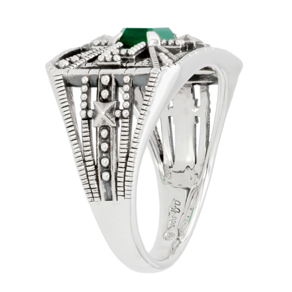 素材:[グリーンメノウ] レクタングルカット 爪留め/接着 1石 最大幅(約) 12.5mm 最小幅(約) 2.5mm 総重量(約) 4.1g [地金] シルバー925 [仕上げ] アンティーク仕上げ ■素材の大きさ・形・色合い、製品のサイズは1点1点多少異なります ■専用ケース付 【タイ製】