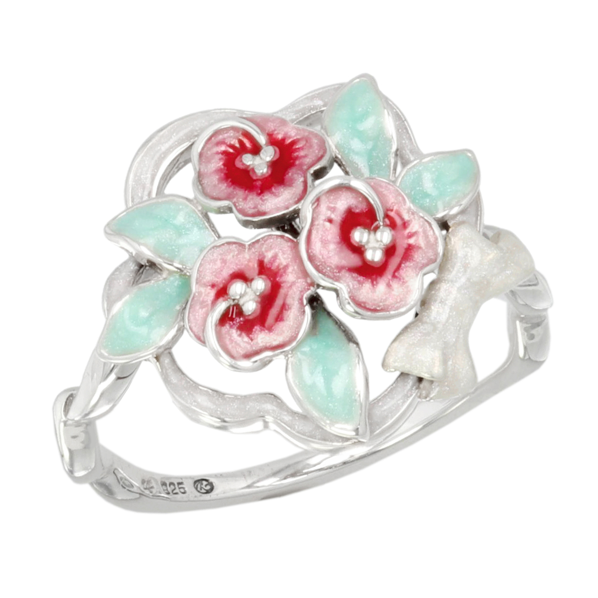 花とリボンの部分にはエナメルを使用。指元に華やかな彩を添えてくれます