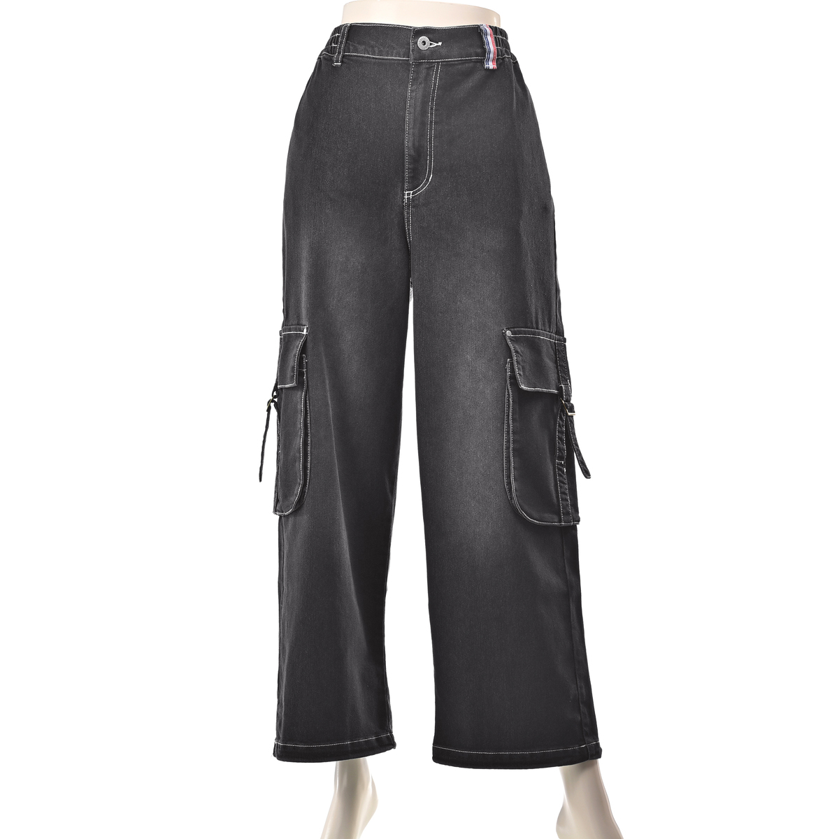裾にスピンドルがついていることや腰上まで上げる事で低身長の私でもお直し不要ではけました。ウエスト、ヒップが大きいので上まで上げるとラインをひろい想っていたゆとりが生まれずそこは残念ですがカーゴパンツが欲しかったし柔らかいデニムなので気分よくリラックスをもたらせてくれて好きです。横から見た時のラインもスッキリしていてポケットがついているのもカーゴパンツの魅力ですよね。