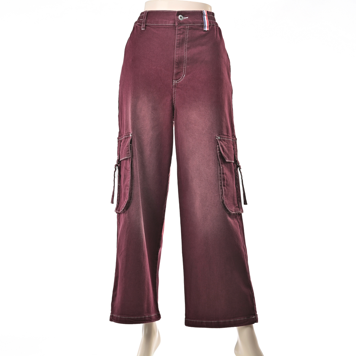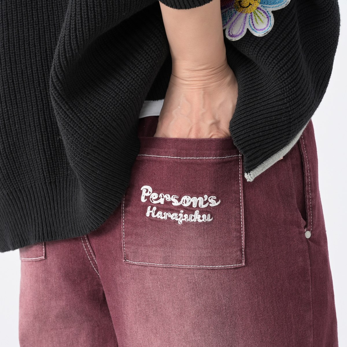 ボルドーが欲しかったのですが ブラックにしたので こちらは ボルドー一択で購入しました。少し長めですが ウエスト上げて履いても バックが落ちたように履けるので いい感じです。色、思っていたとおりのボルドーで満足きてます。ストーン加工がかっこいいです。