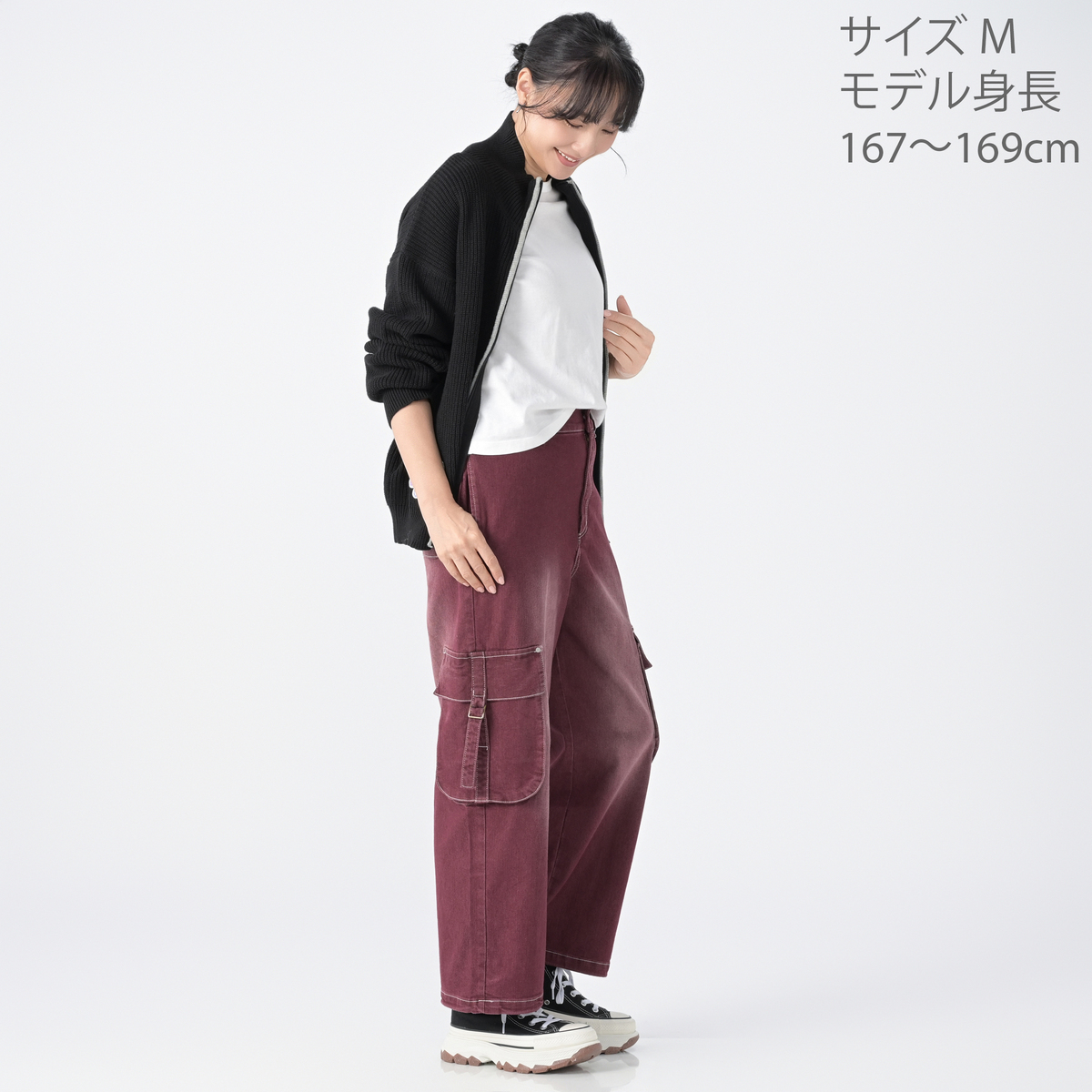 柔らかなデニム素材を使ったカーゴパンツです。ゴワゴワ感が少なく、ブラスト加工によるヴィンテージ感のある色合いがこなれた雰囲気を演出。ワイドストレートシルエットが足を真っ直ぐに見せ、体型をさりげなくカバーします