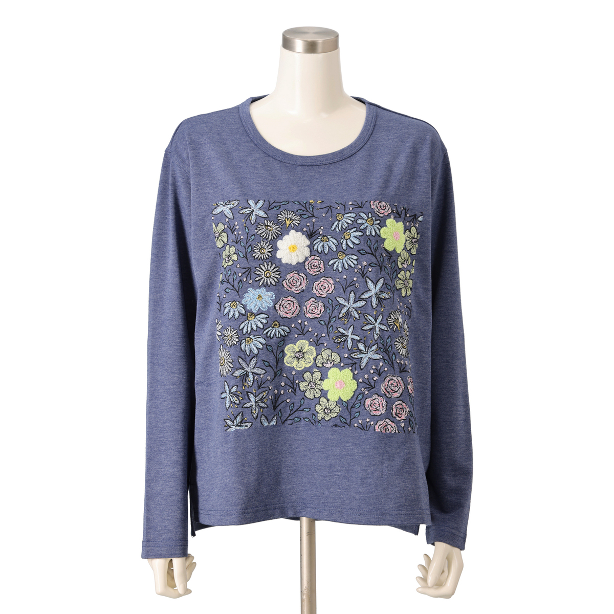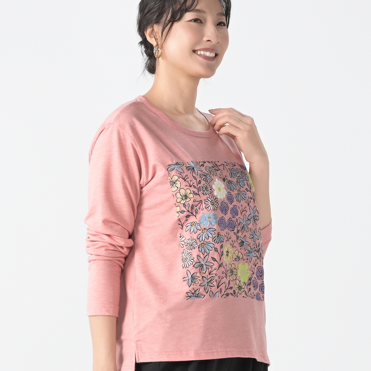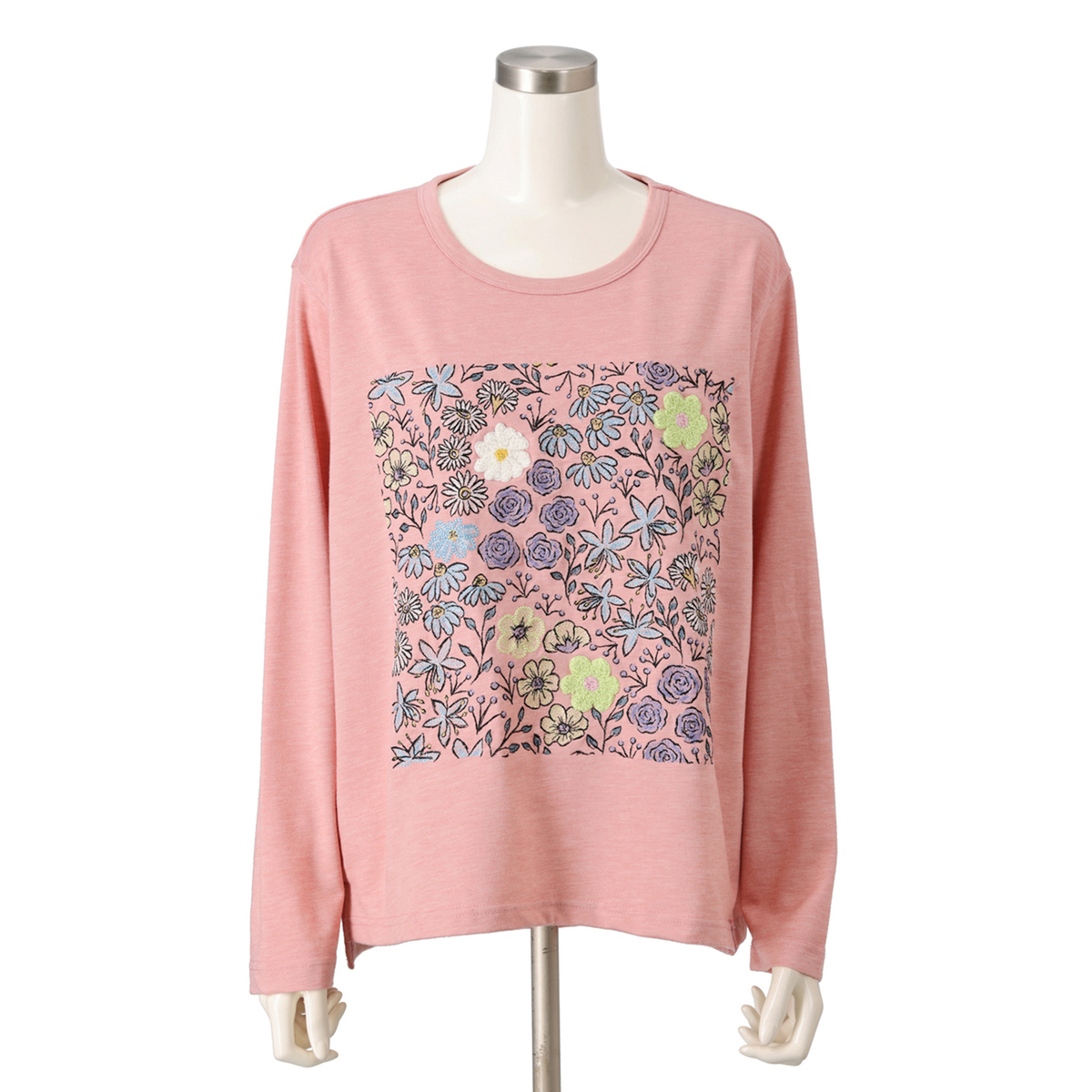No. 750084 PERSONS フラワーブーケ刺繍長袖Tシャツ