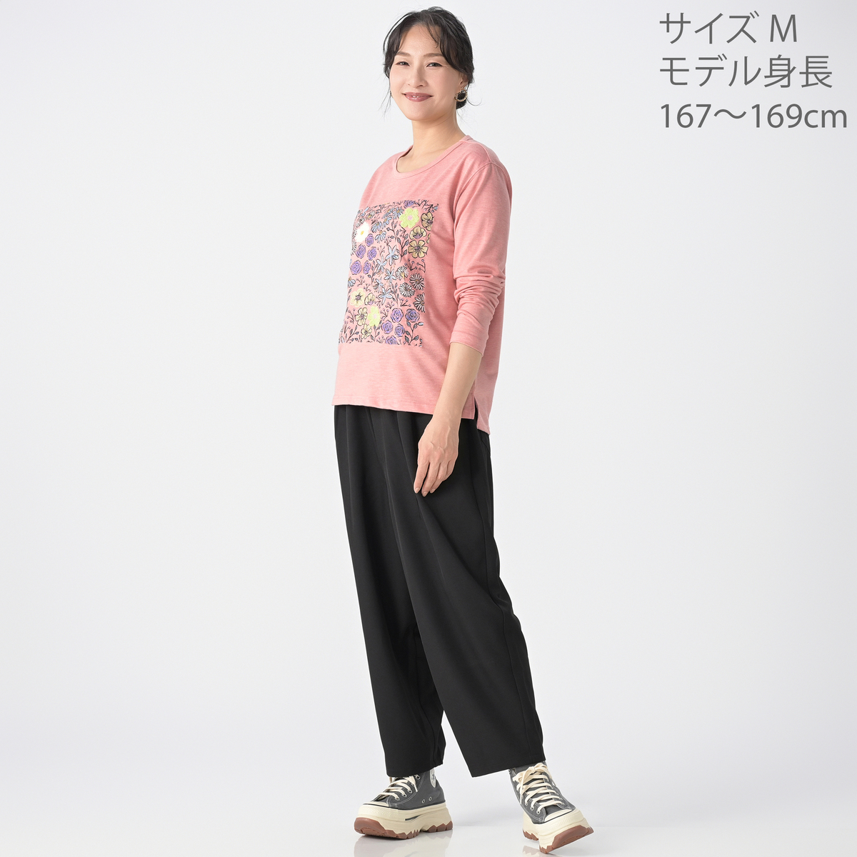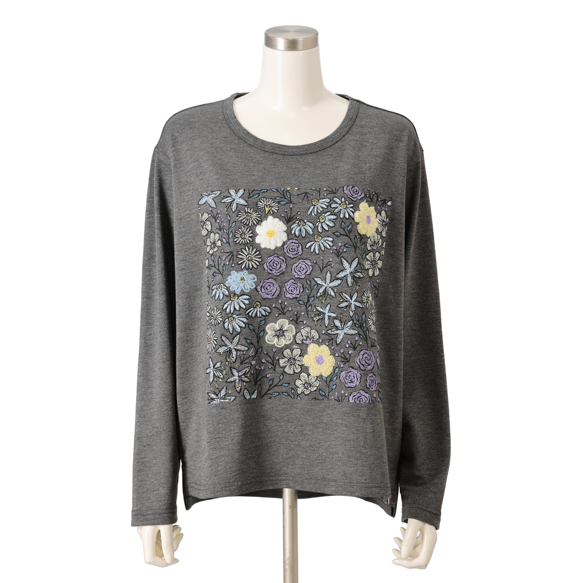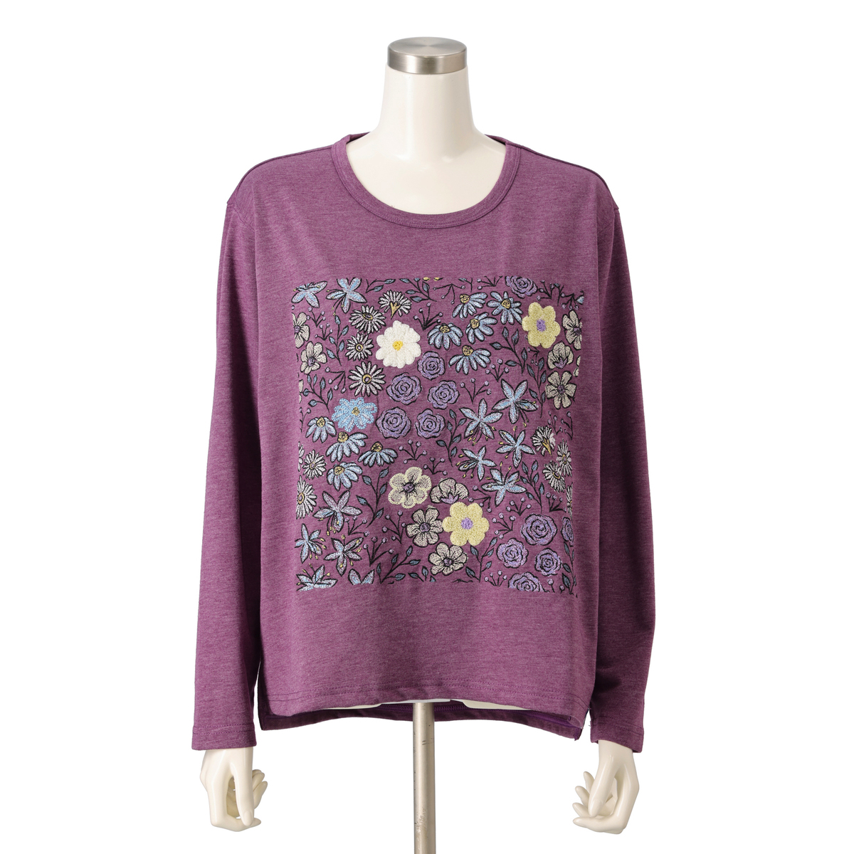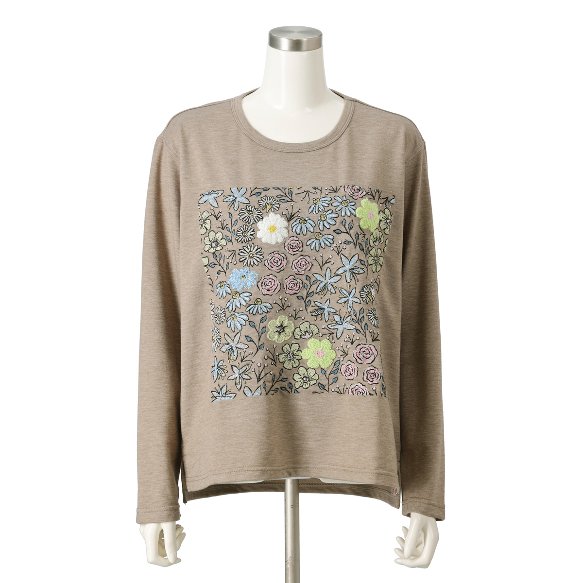 No. 750084 PERSONS フラワーブーケ刺繍長袖Tシャツ