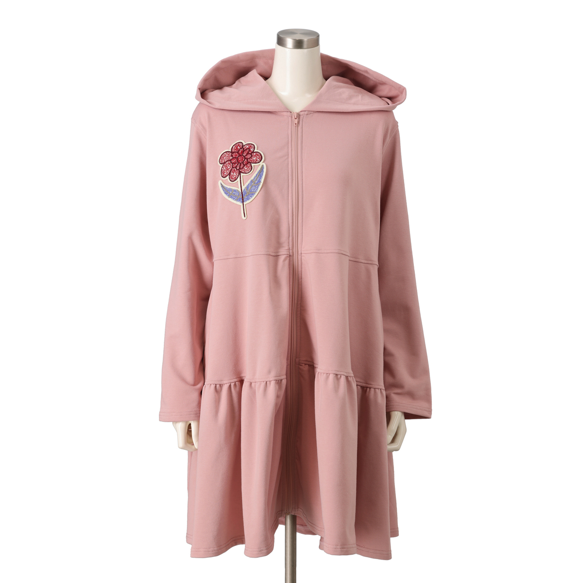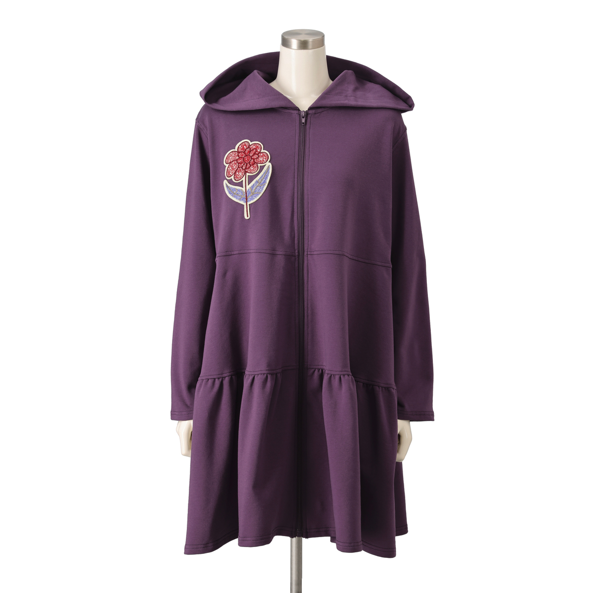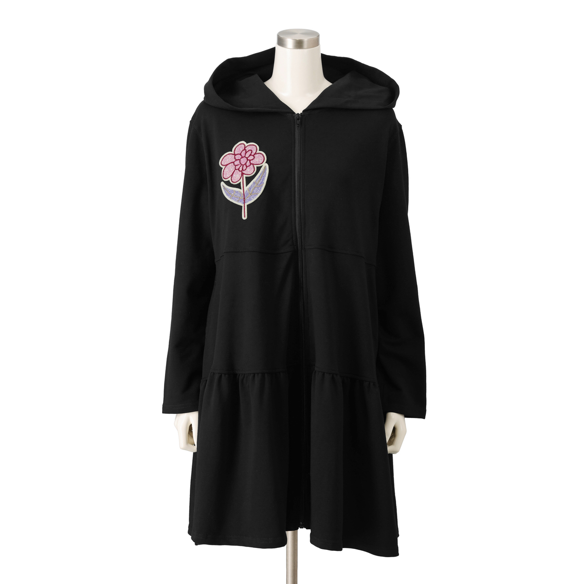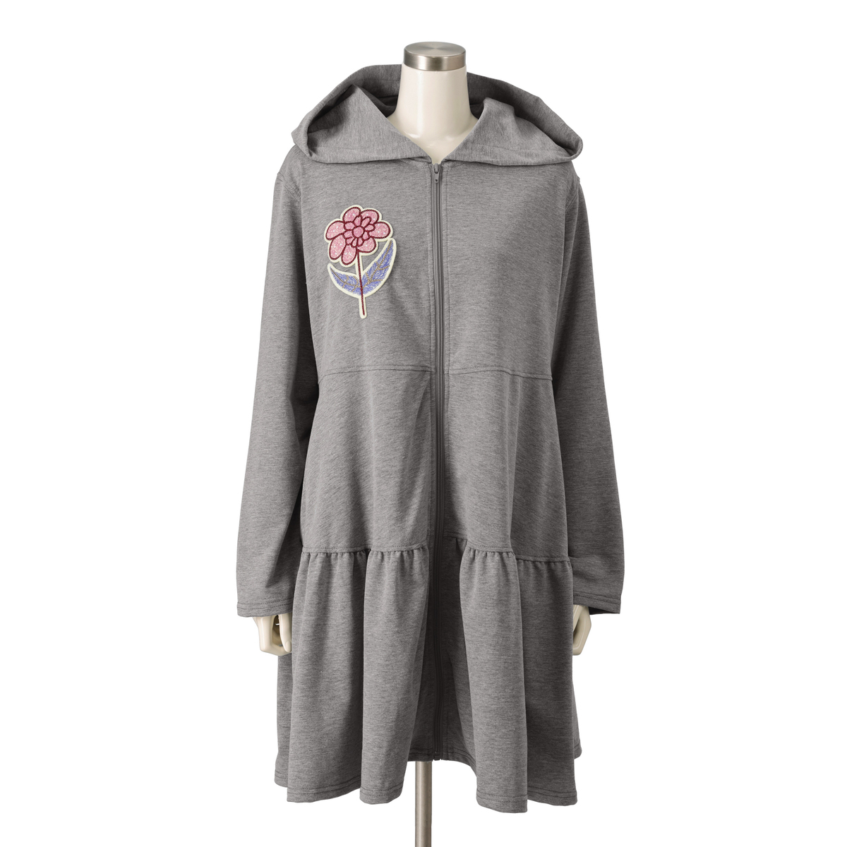 やや薄手の裏毛素材を使用した、チュニック丈のティアードデザインパーカー。膝上丈でハーフコート感覚の着こなしが楽しめる一枚です。バスト下の切替え位置を高めに設定することで、自然とスタイルアップが叶い、すっきりとした印象でお召しいただけます