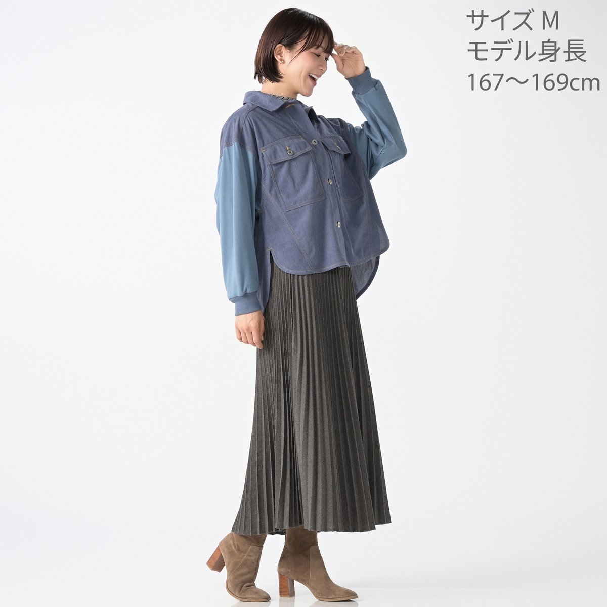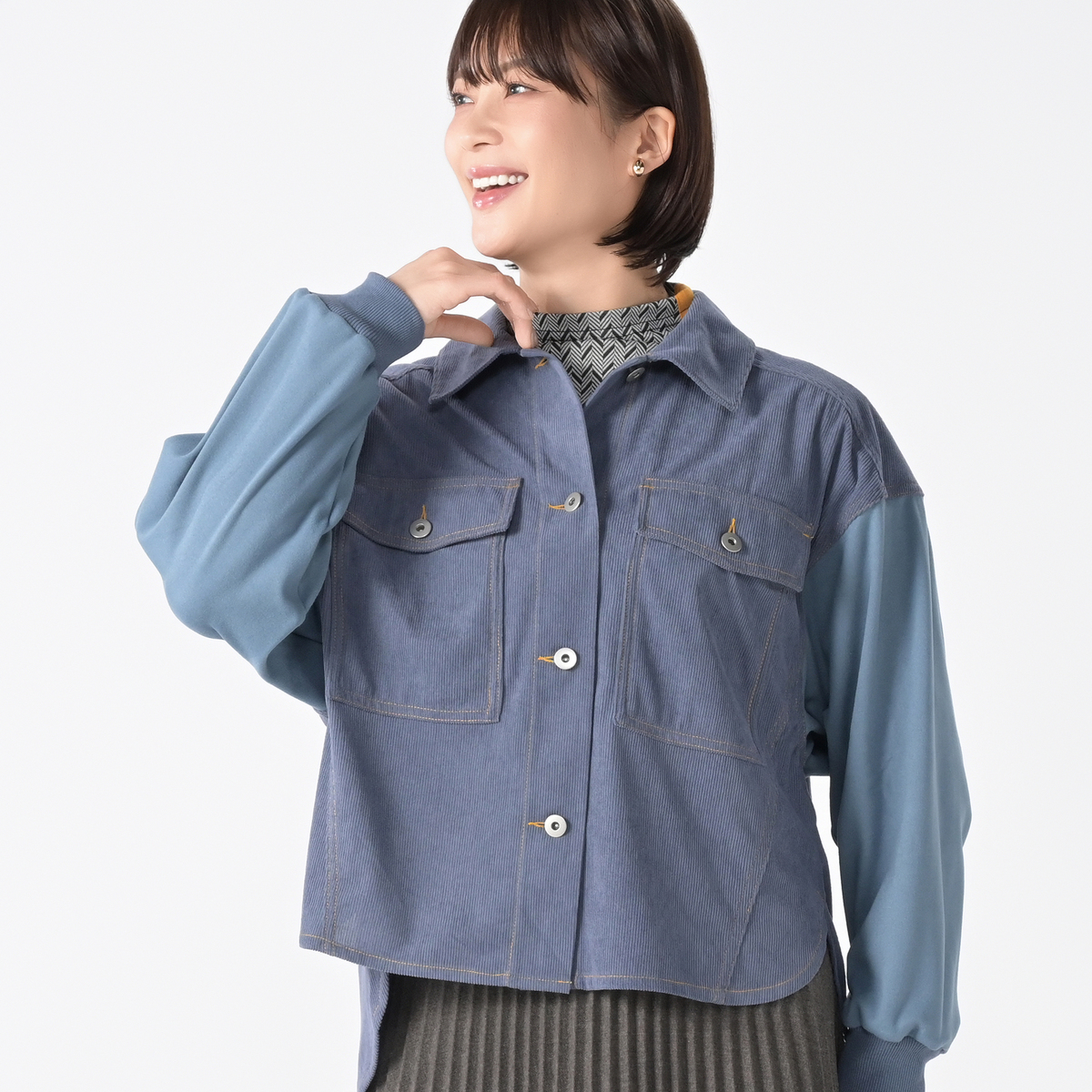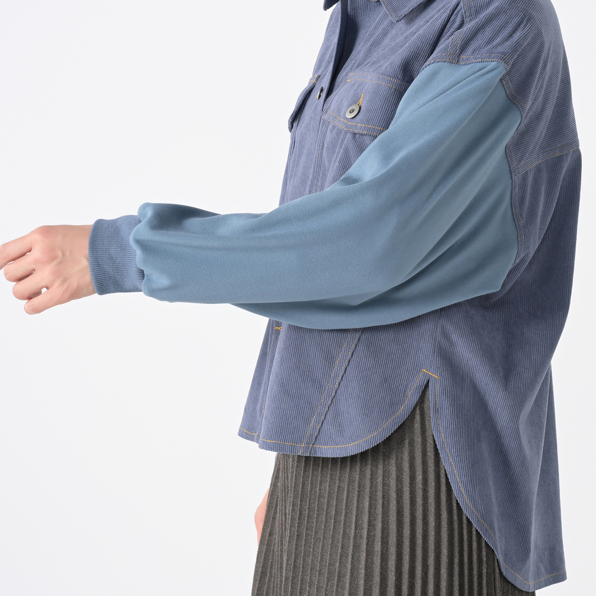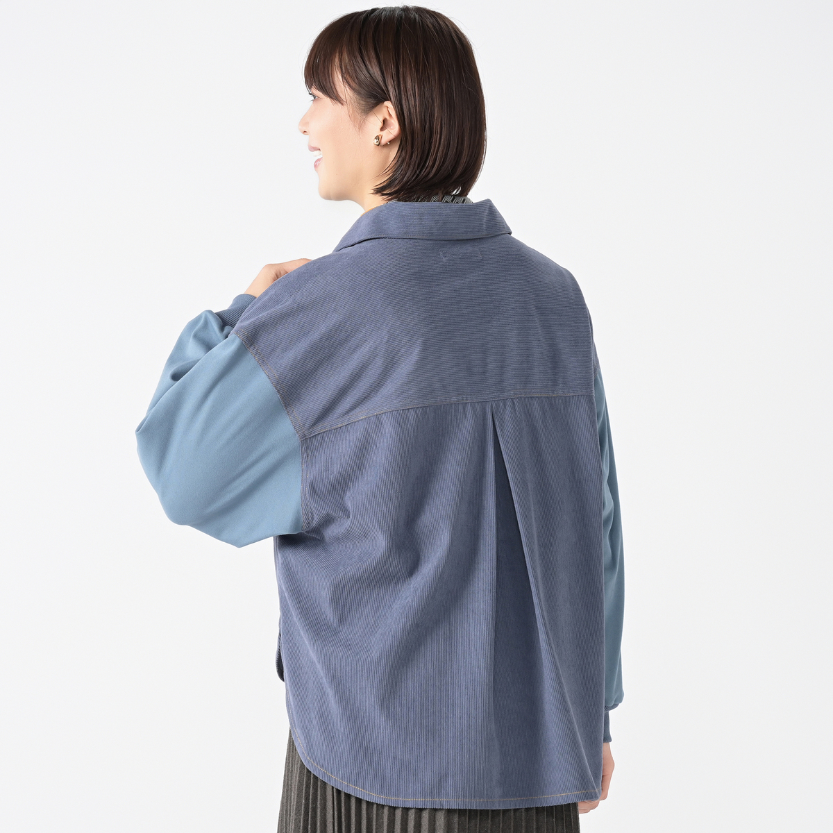 柔らかなコーデュロイの優しさが心地よいコンビシャツプルオーバー。シャツとしても羽織りとしても着回せ、季節感あるコーデュロイに、袖は両面起毛素材で肌触りも快適です