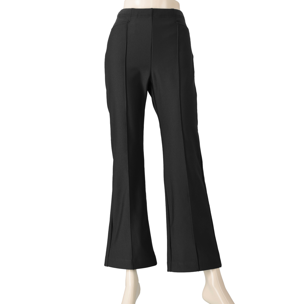 前中心にピンタックラインを施した3D美ラインパンツ。ポケットから続く縦のラインが、脚を美しくまっすぐ見せてくれます。両脇前のポケットがウエストにメリハリを与え、スッキリとした印象に。また、目線を高くすることで縦長効果が期待できます