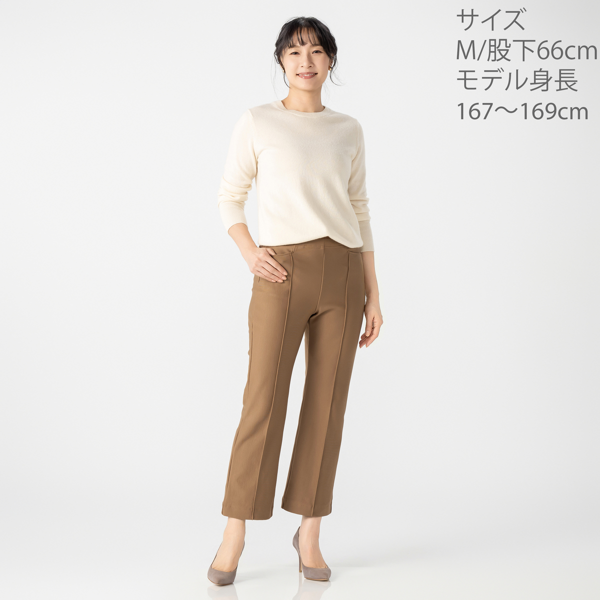 [商品寸法(ヌード)cm] サイズ ウエスト ヒップ S : 62(58〜64) 86(82〜90) M : 68(64〜70) 92(87〜95) L : 74(69〜77) 98(92〜100) LL : 80(77〜85) 104(97〜105) 3L : 86(85〜93) 110(102〜110) サイズ 前股ぐり わたり幅 S : 26 27.5 M : 27 29.5 L : 28 31.5 LL : 29 33.5 3L : 30 35.5 股下:66/70 [ウエストゴム] 全体に有 [素材] ポリエステル88% ポリウレタン12% [お手入れ] 手洗い可 [注意事項] ※商品寸法の誤差は多少発生します。ご了承下さい ※淡色製品には蛍光増白剤入り洗剤を使用しないで下さい ※洗濯後はすぐに脱水し、形を整えて干して下さい。長時間水につけたままにしないで下さい ※洗濯後は重ね置きしないで下さい ※直射日光や蛍光灯の影響で変色することがありますのでご了承下さい ※濃色製品は着用中の摩擦により色移りすることがあります。また、雨や汗等で濡れた状態で着用すると色移りすることがあります。その際はお早めに洗濯をして下さい ※素材の特性上、多少伸び縮みすることがございます ※あて布を使用して下さい 【日本製】